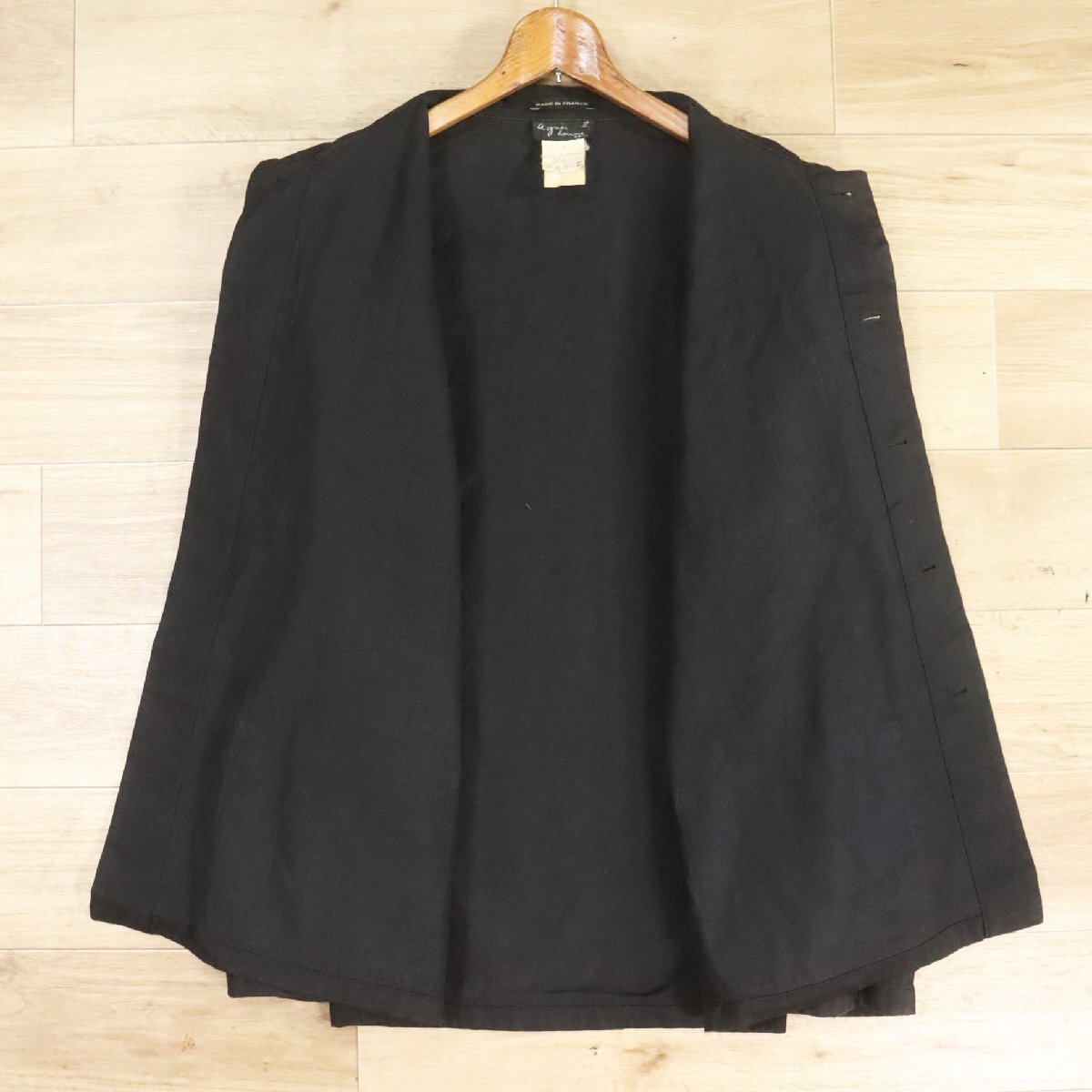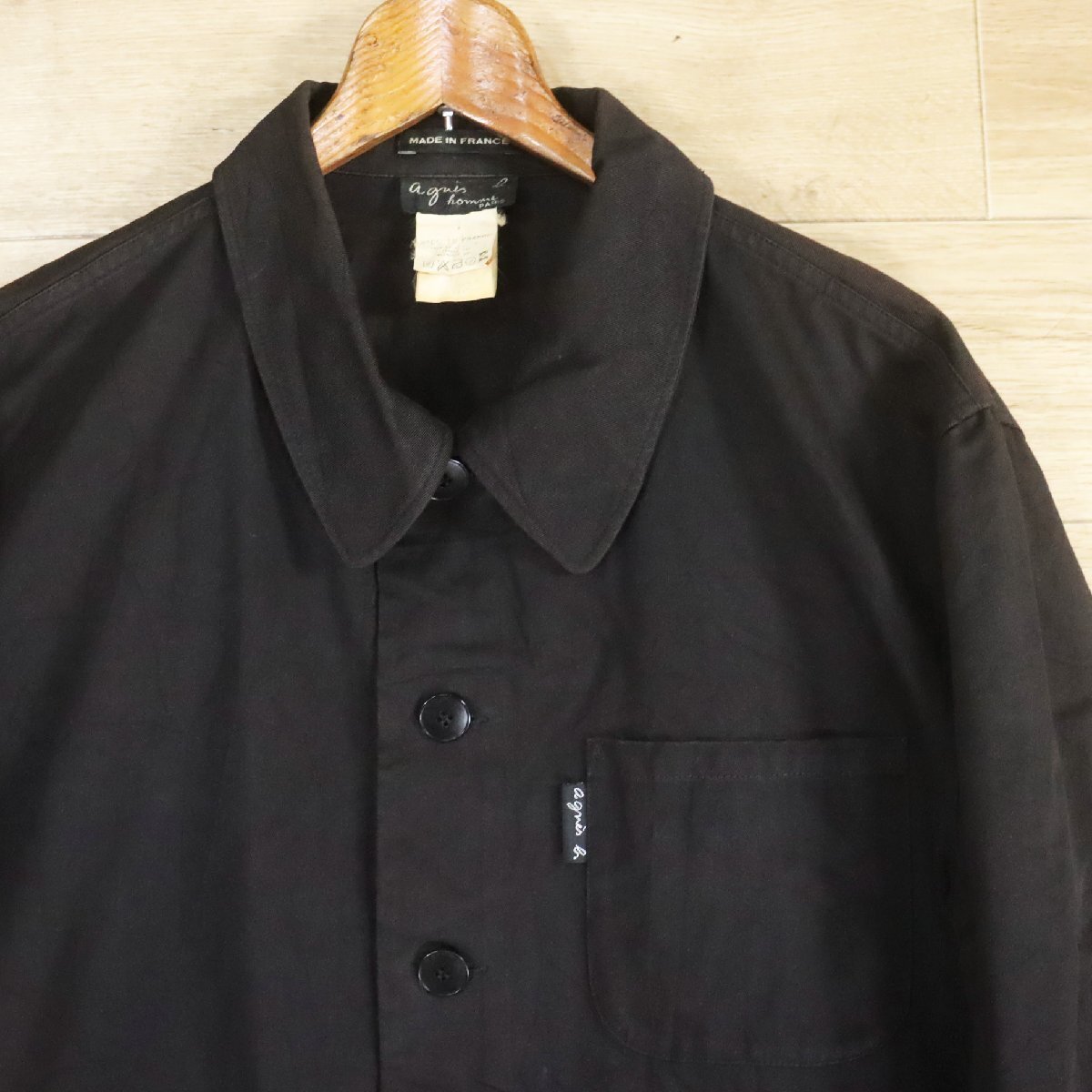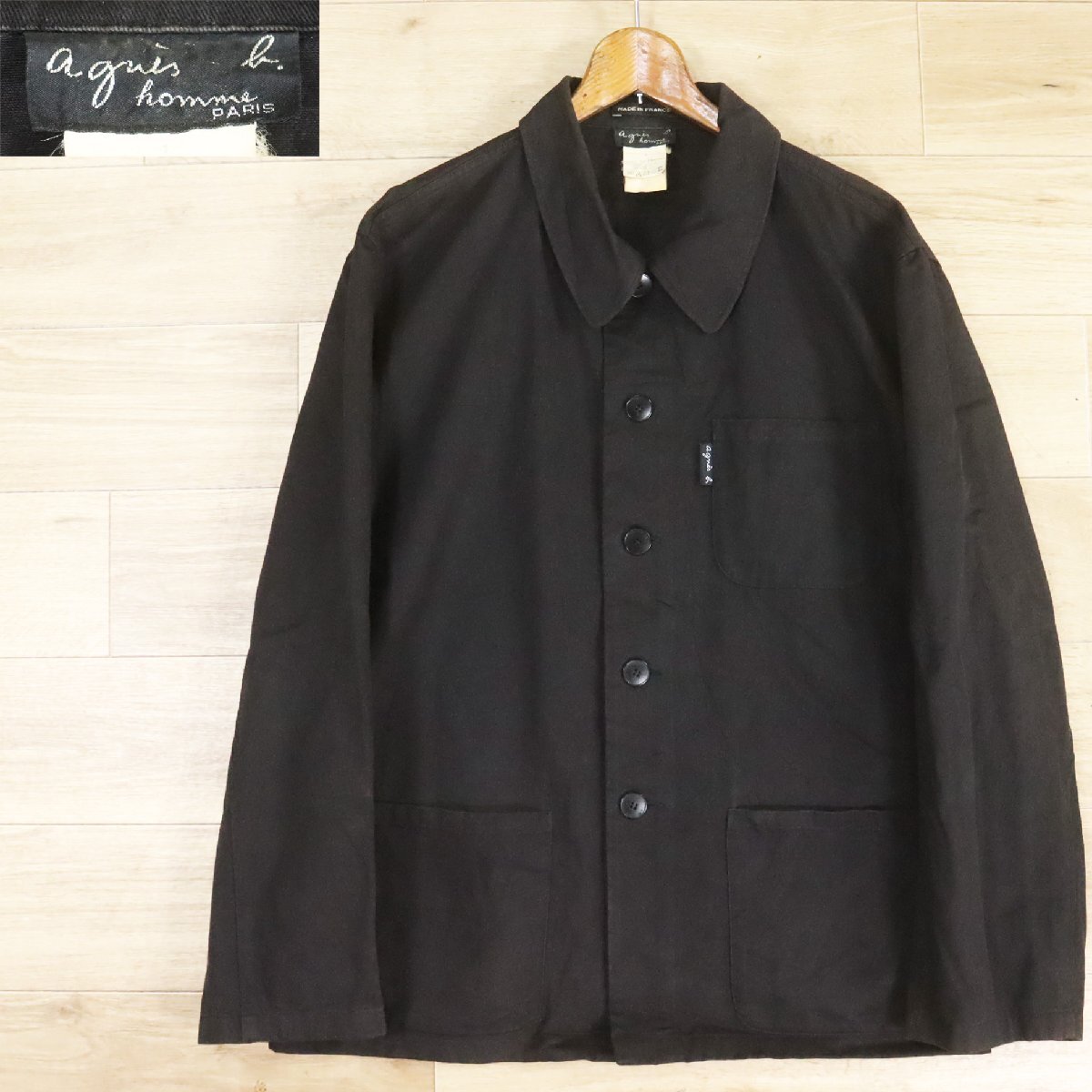 ?2Y/Y7.28-4 90s フランス製 agns b. アニエスベー カバーオール ワークジャケット コットンジャケット メンズ ブラック サイズ1