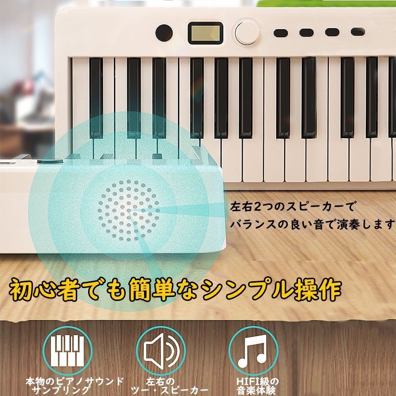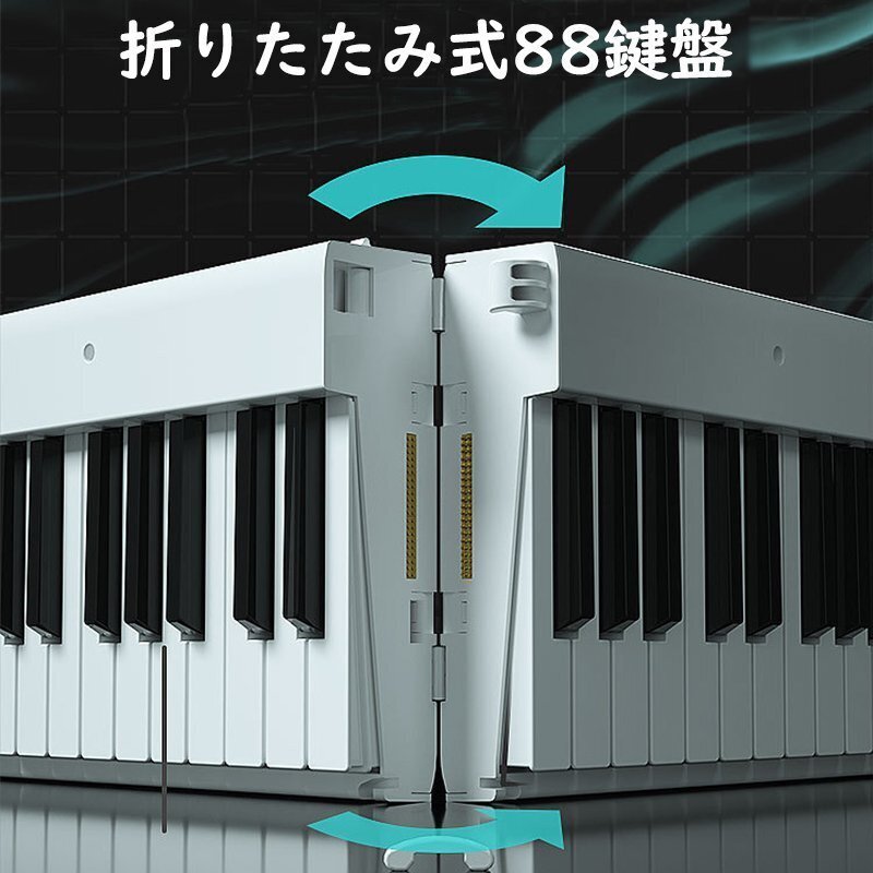 【88鍵盤充電式、且つ折り畳み可能】大容量バッテリ内蔵し、折り畳んだ後わずか4kg、61.3*21.7*11.4㎝サイズで、専用ケースも付く。さらに、背面のボタンを押すだけで折り畳め、ロックの紛失恐れもなし。コンパクトで軽量なデザインのため、どこにでも持ち運びが可能で、特に旅行や外出先での使用に最適です。