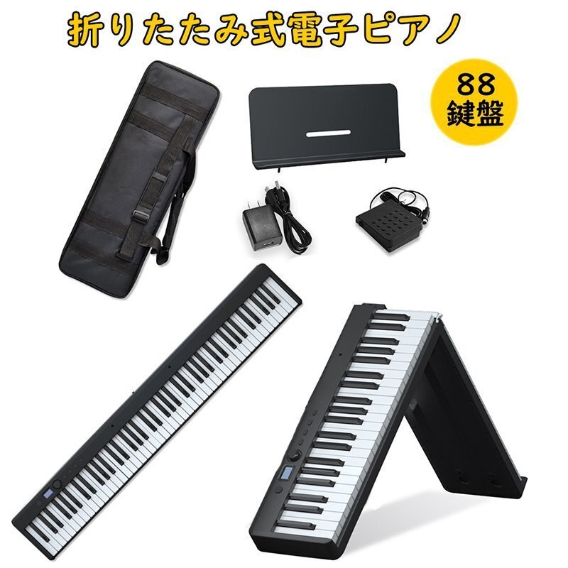 電子ピアノ 88鍵盤 充電型 ペダルポート対応 本格MIDIポート対応 ペダル付属 バッテリー内蔵 練習用イヤホン 128種音色 収納袋付 携帯型 黒
