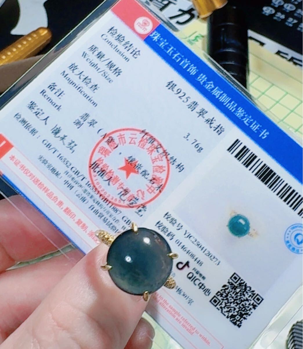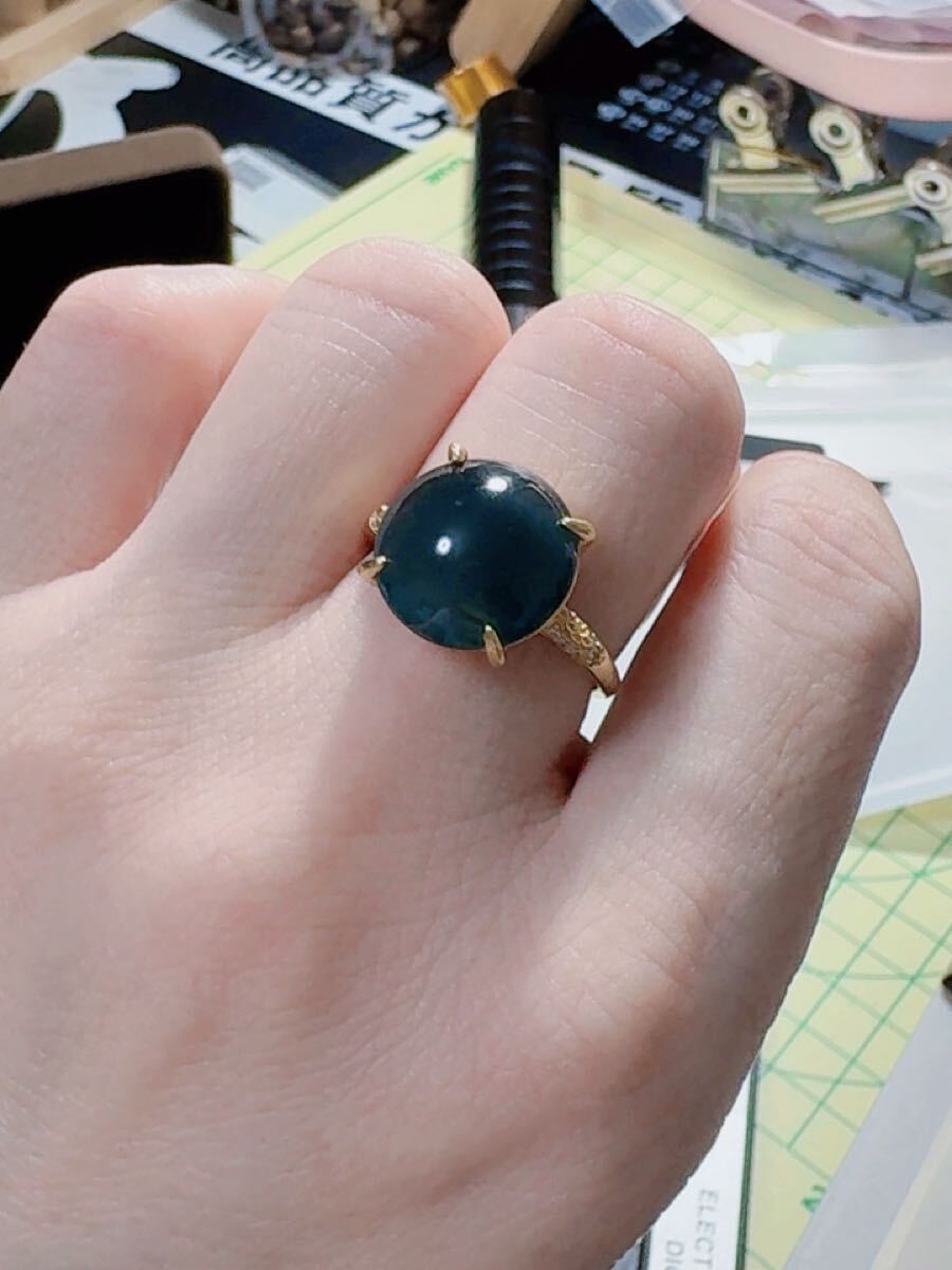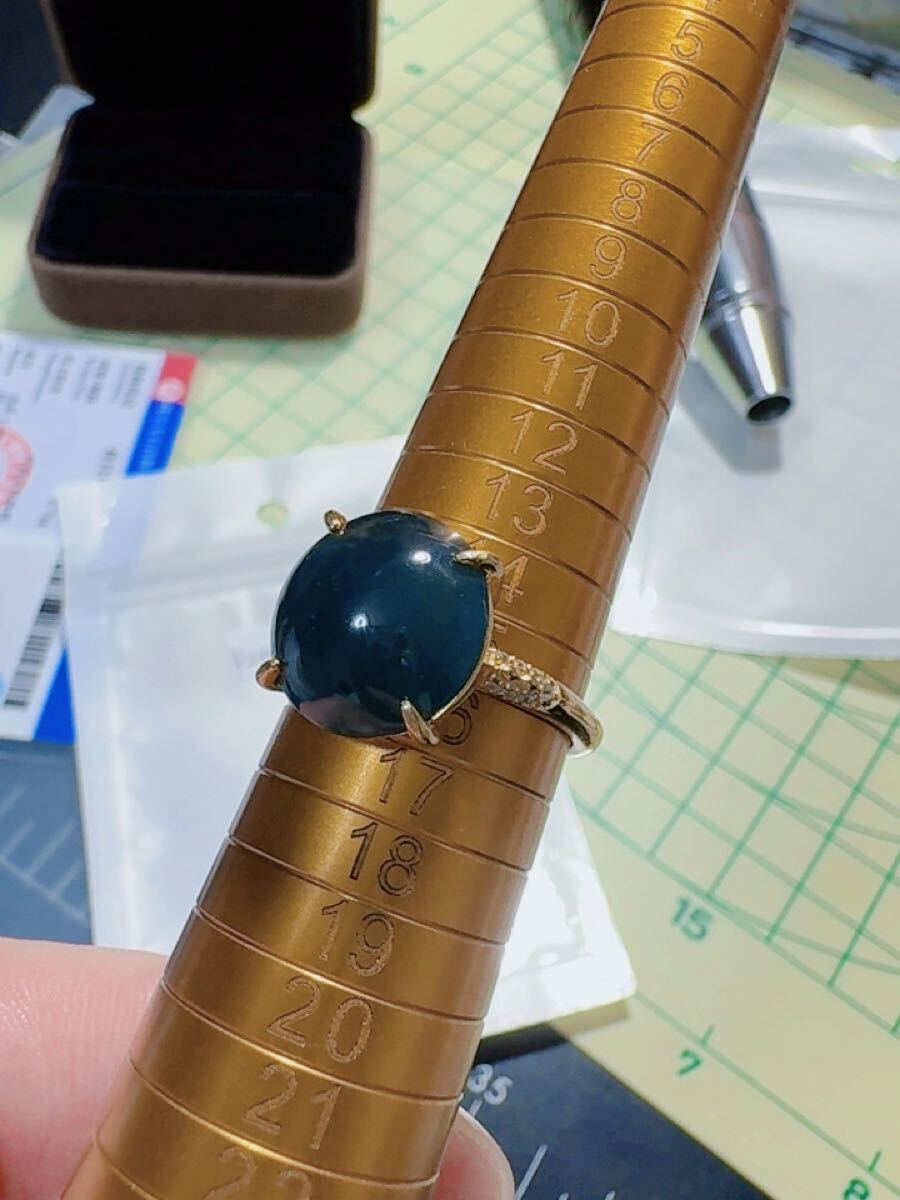 R2M-0359 天然本翡翠《本物保証》翡翠リング フリーサイズ 現状約15号 天然石 一点物 希少 縁起物 お守り パワーストーン 海外鑑定書付き