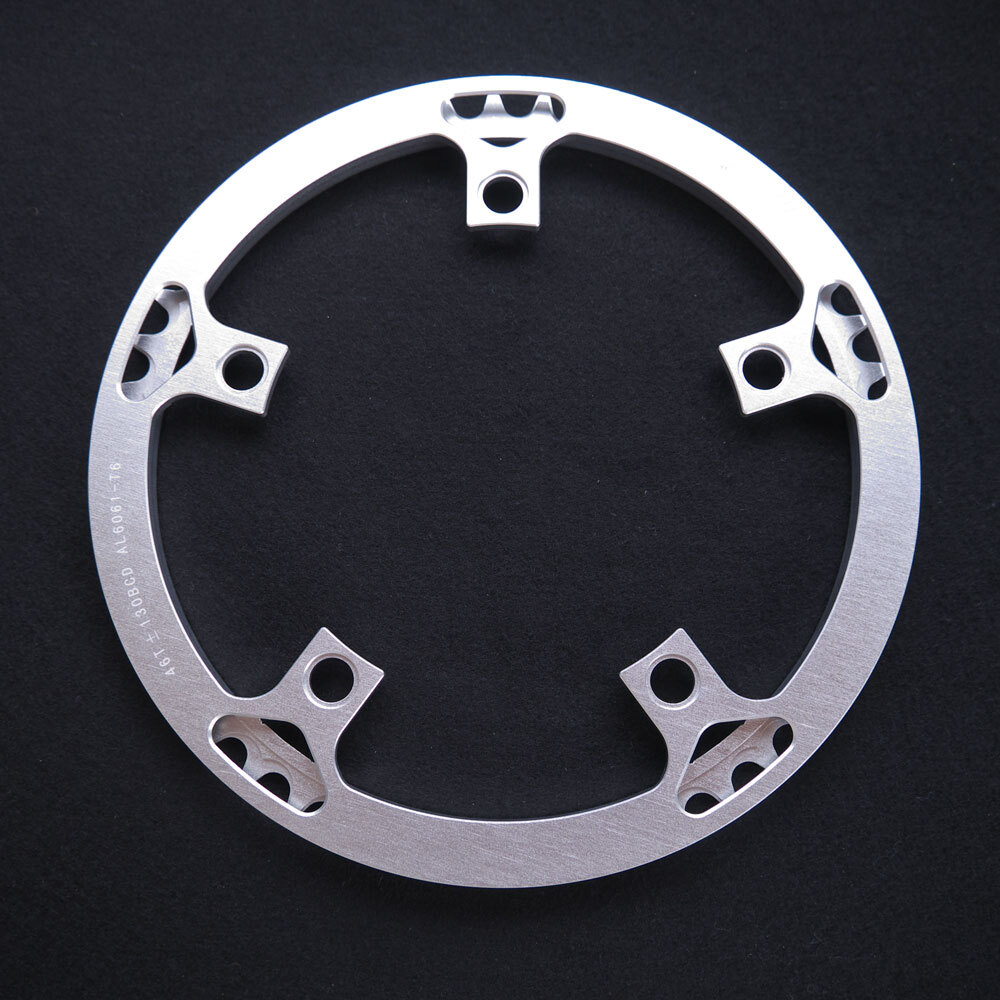 ちょっと珍しいガード一体型のナローワイドチェーンリングです。PCD130で、8速から11速まで対応します。フロントシングル専用です。