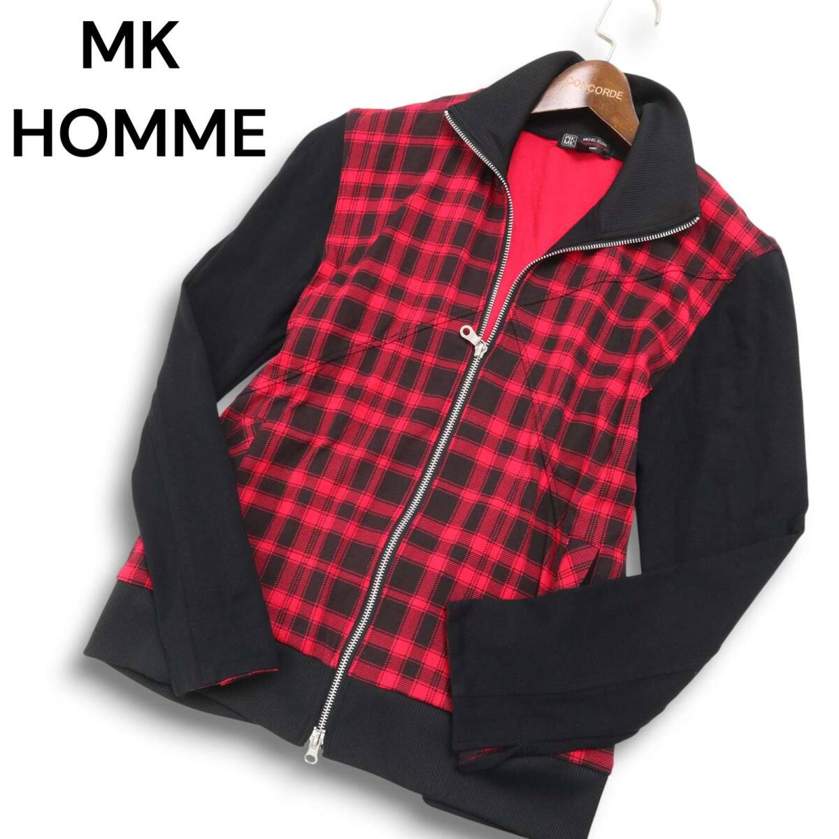 MK HOMME ミッシェルクラン オム 通年★ ダブルジップ チェック ブルゾン ジャケット Sz.48 メンズ