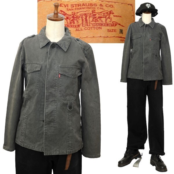 ★【国内正規品 中々見つからない逸品】90s位 ビンテージ Levi's リーバイス 78556 ミリタリーデザイン タイト ツイル ジャケット M チャコールグレー | ||||