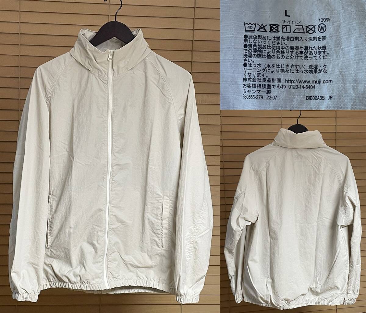 【激安1点のみ 国内正規品】無印良品 MUJl 撥水ナイロン フード付き ウィンドブレーカー ジャケット L ライトグレー系 BIB02A3S