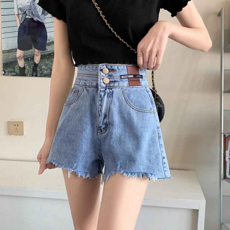 大人カジュアルスタイルのカットオフダメージデニムショートパンツ