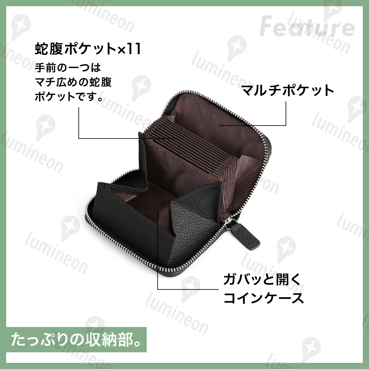 蛇腹ポケットが11個と小型ながらも大容量♪