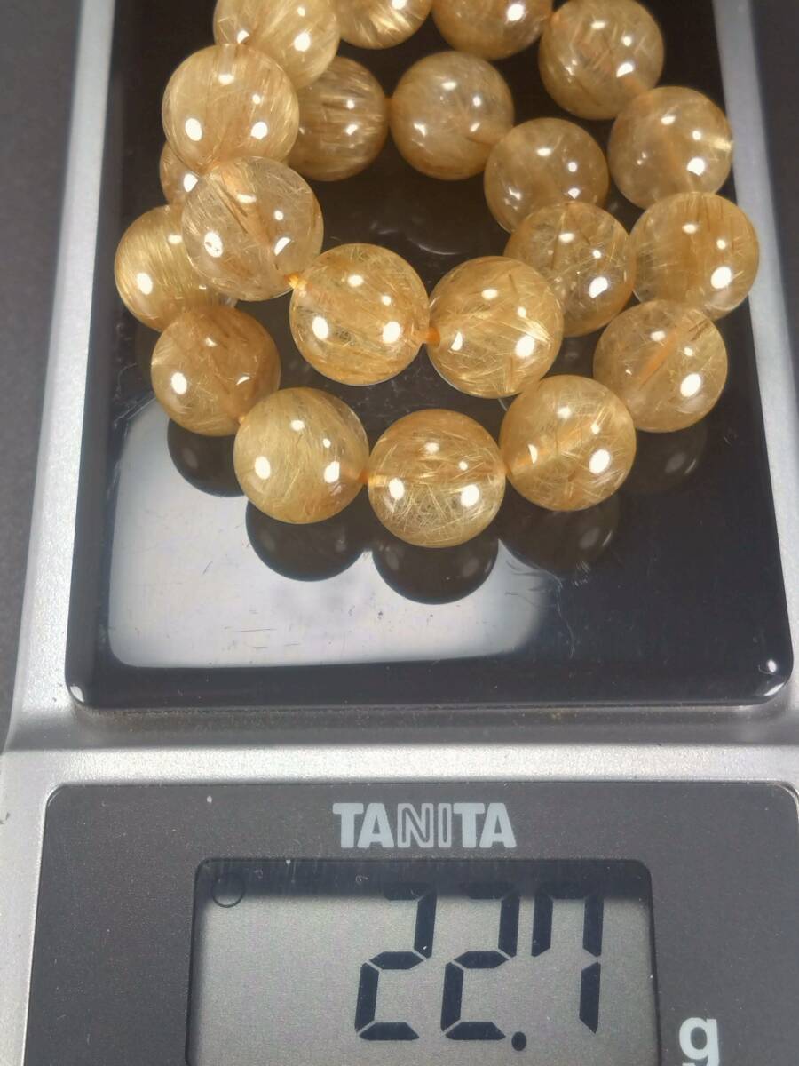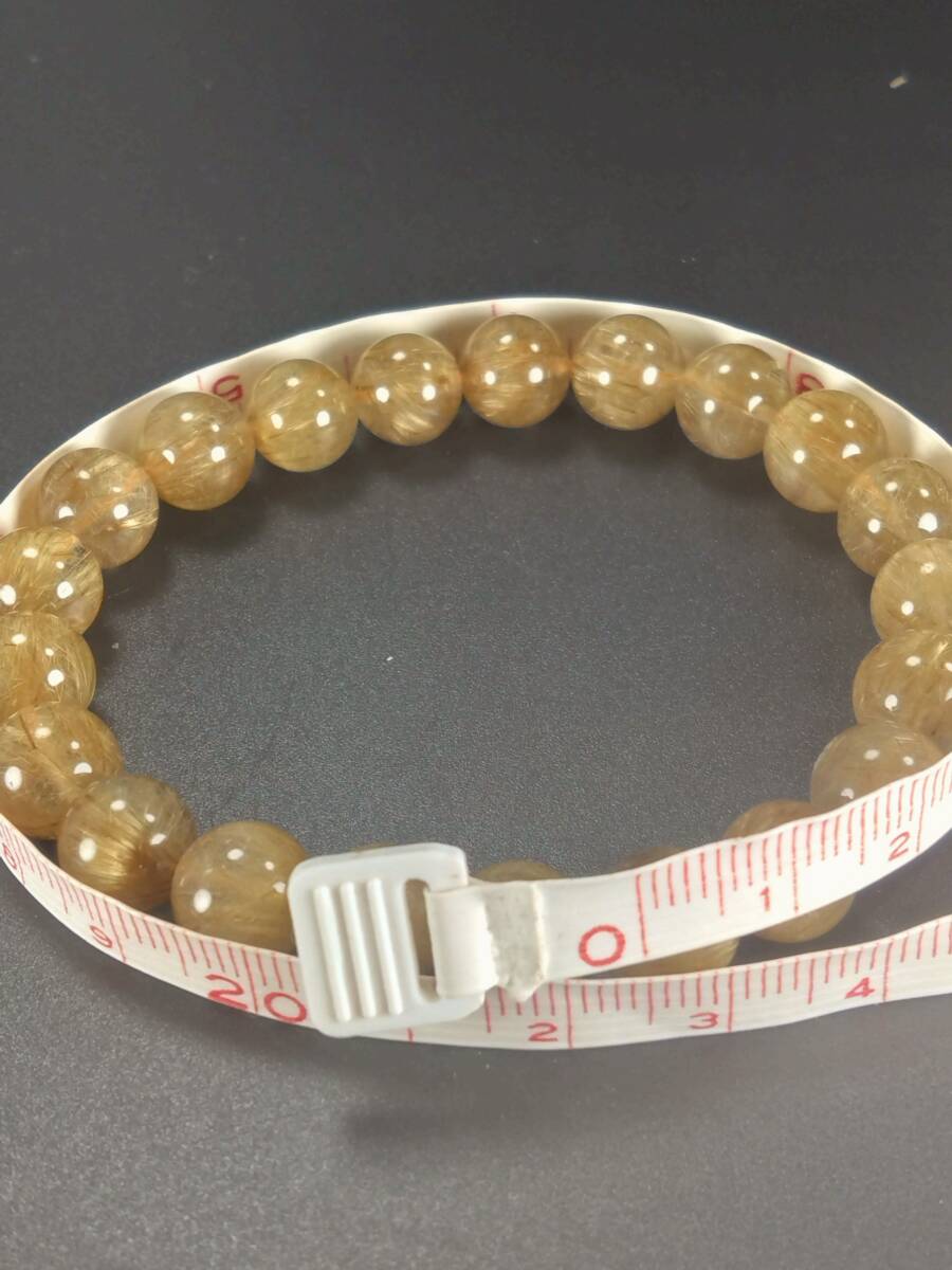 ワンランク上のルチルインクォーツ9.5〜9mm玉21石 内径約16.3cm 外径約22.3cm ポリウレタンゴム使用ブレスレットのご紹介です 在庫処分特価にしていますが新品です まだノーオーナーですのでご安心下さい
