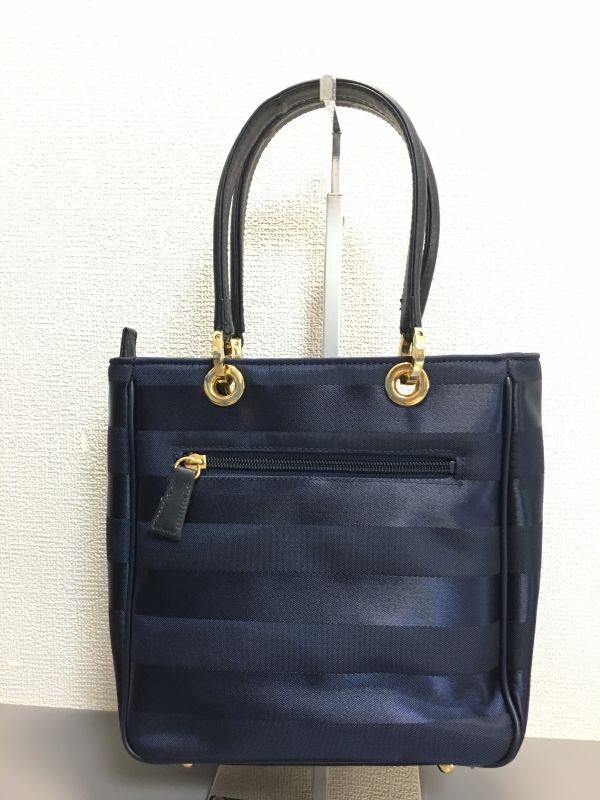 Courreges クレージュ ボーダー柄 ハンドバッグ ネイビー