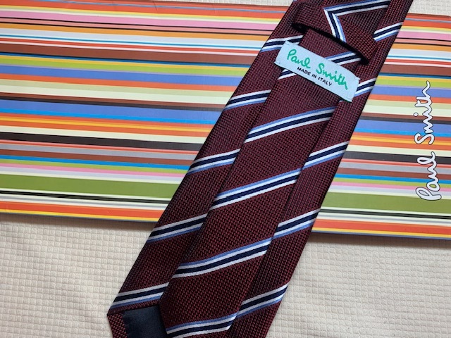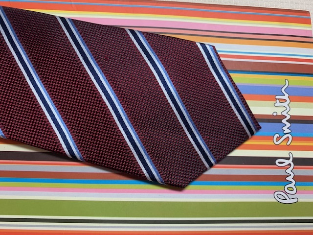 Paul Smith ポールスミスMade in Italy ネクタイエンジストライプ柄シルク100