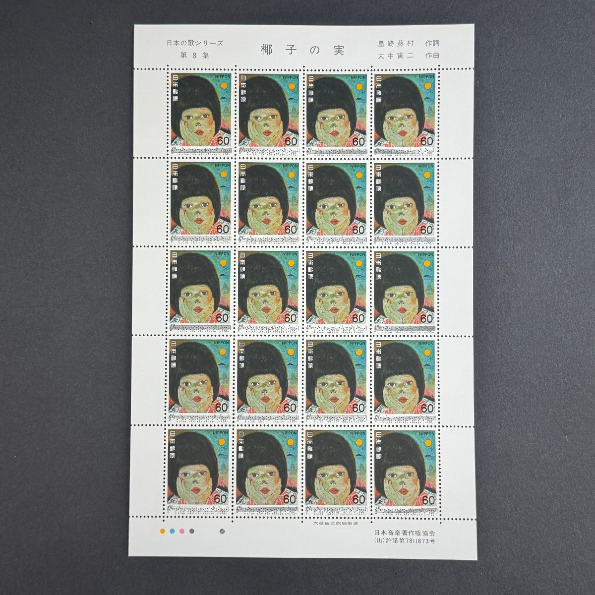 【月】【切手3801】美品 額面1200円 日本の歌シリーズ 第8集 椰子の実 60円x20枚 未使用 1981年