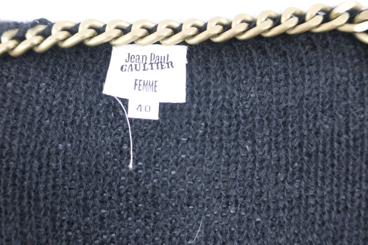 【送900円】1350 Jean Paul GAULTTEIR ジャンポール・ゴルチエ ニットロングカーディガン アウター アルパカ100% 黒 金具 40