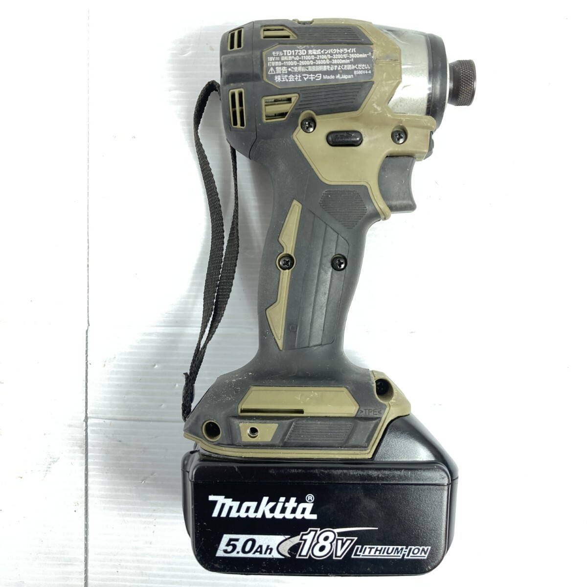 ** MAKITA マキタ 18V 充電式インパクトドライバ バッテリ1個付属 ※充電器なし TD173D オリーブ やや傷や汚れあり