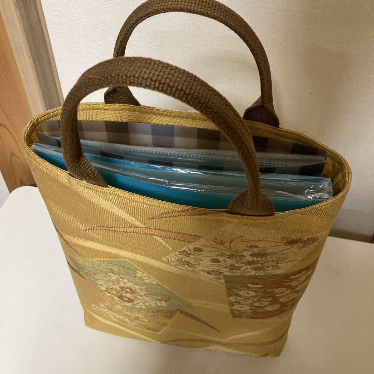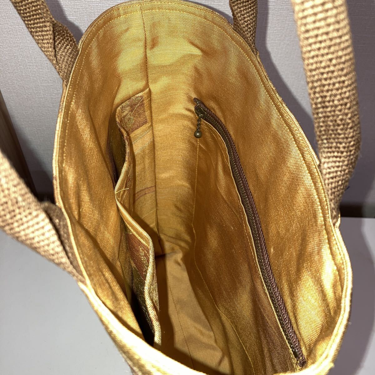内ポケットは、模様の2口のポケットが1個、ファスナー付きポケットが1個付いています。