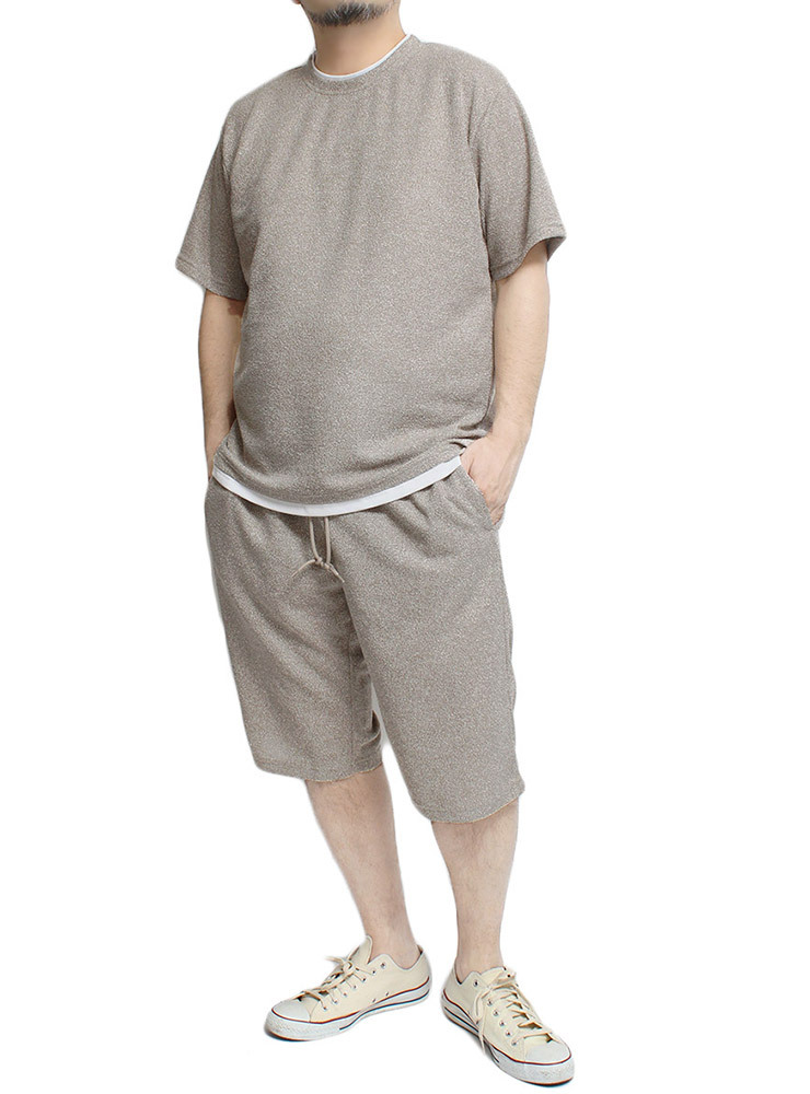 | 商品名 | 【新品】 3L ベージュ ショートパンツ メンズ 大きいサイズ メランジ パイル 消臭 抗菌 薄手 ウエストゴム イージー ハーフパンツ |