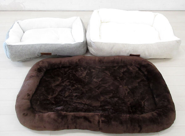 内 容 | ■ペット用ベッド ・グレー(約52×43×H15cm)×1点 ・ベージュ(約65×52×H15cm)×1点 ・ブラウン(約75×46×H6.5cm)×1点 |