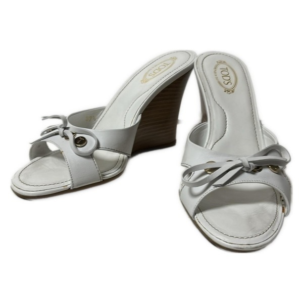 トッズ TOD'S ミュール 37 1/2 - レザー 白 レディース リボン 靴