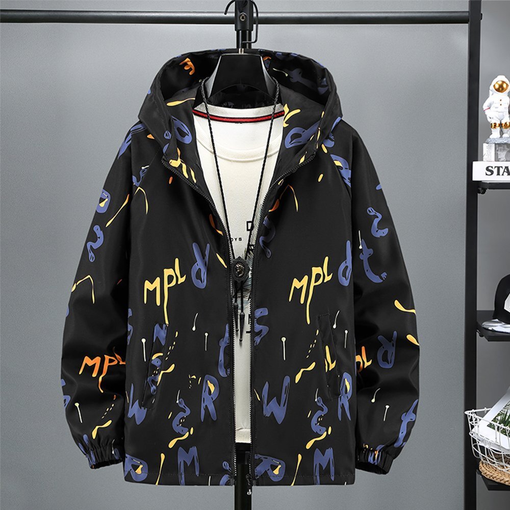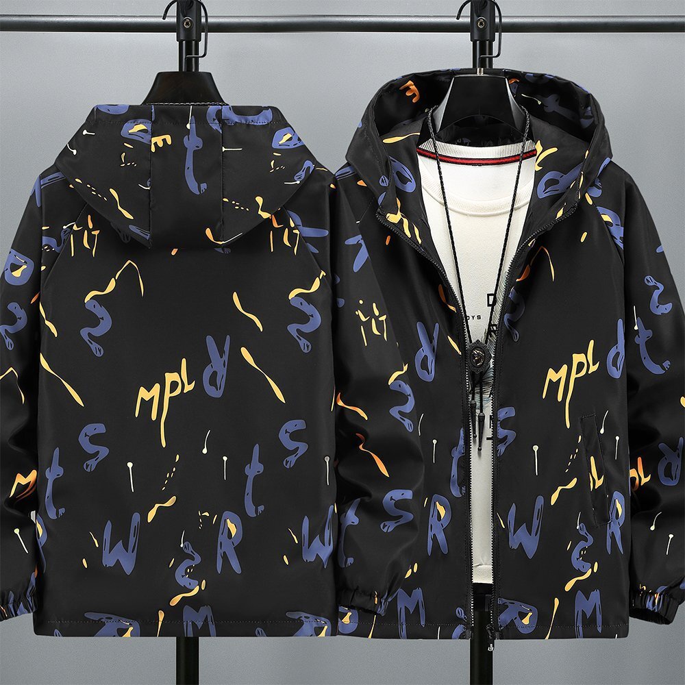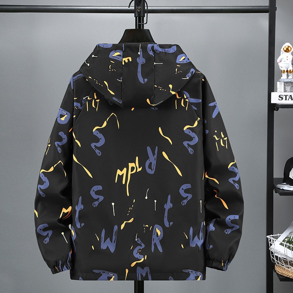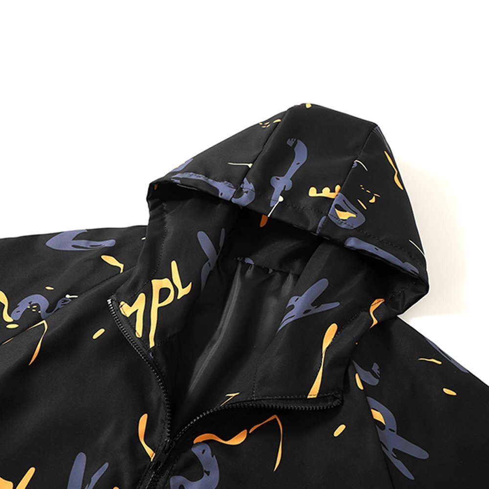 個性ヨーロッパ製※定価6万◆ブルガリア発※RISELIN ジャケット フード付き 落書き柄 個性 アウター マウンテンパーカー ブルゾン カジュアル 街着 XL/50サイズ