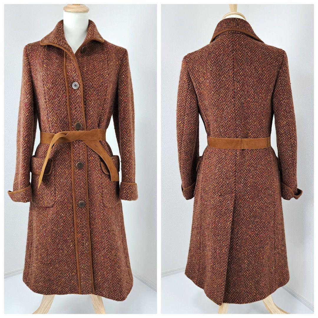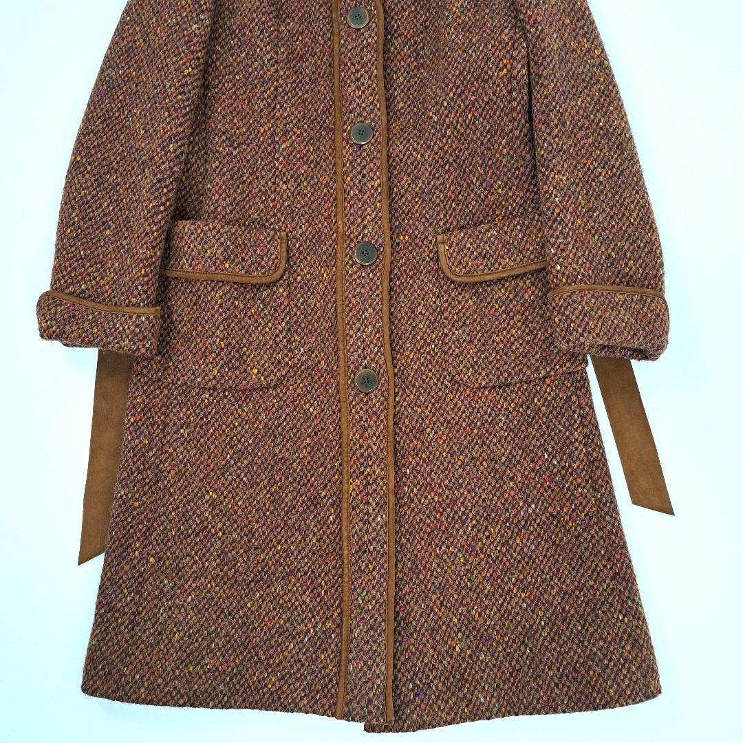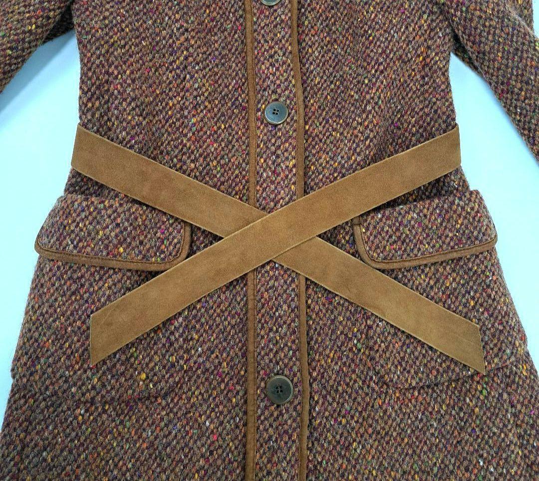 彩りが綺麗な糸で仕立てられたウールコートになります。ベルトなどにレザー素材もあしらわれ、高級感のあるお洋服になります