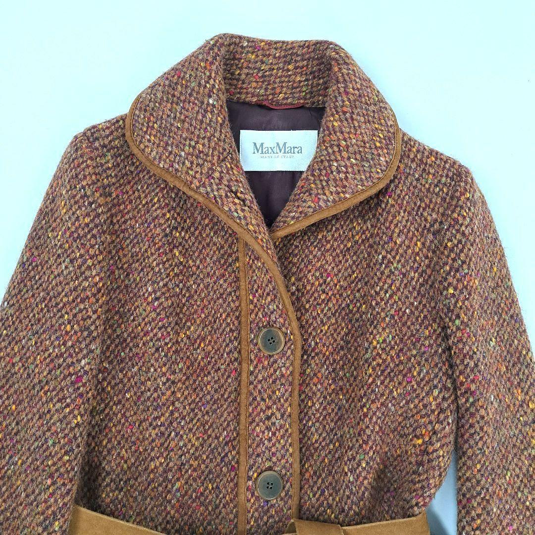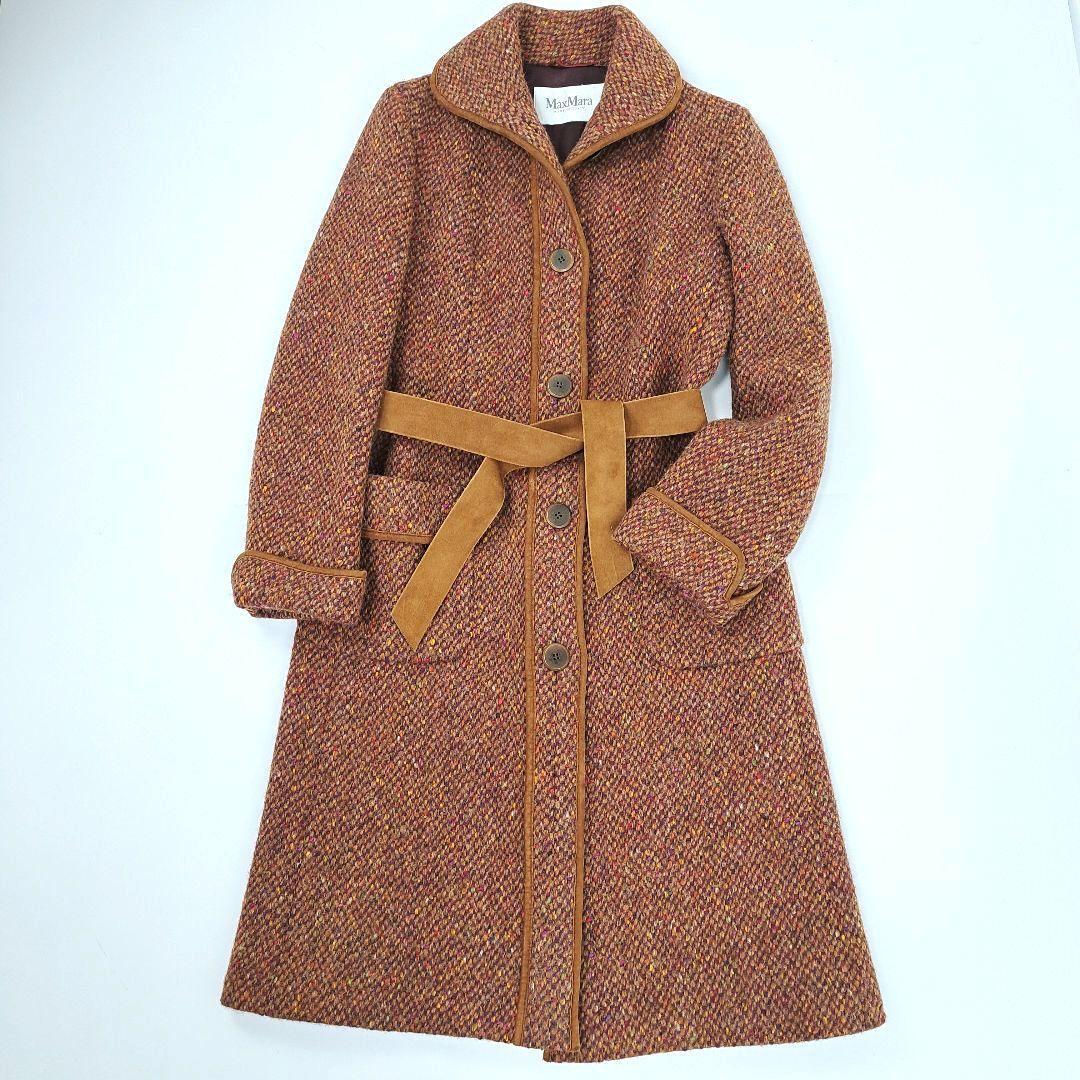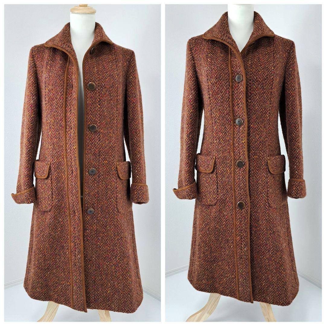彩りが綺麗な糸で仕立てられたウールコートになります。ベルトなどにレザー素材もあしらわれ、高級感のあるお洋服になります