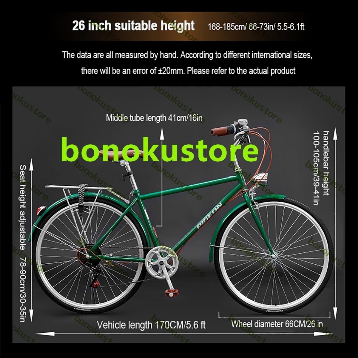 商品説明 ☆ 26 インチのホイールは身長 5.5 フィート以上のライダーに最適で、自転車を所有している限り、性別に関係なく、あらゆる年齢の人々が乗ることができます。 ☆ 快適さとスタイルを追求したクラシックな半直立ハンドルバーを備えた高炭素鋼自転車フレームは、通学