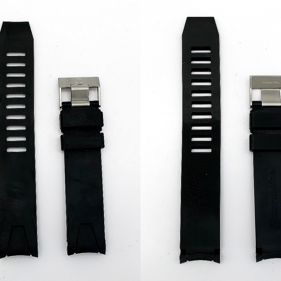 商品説明:オメガのラバーバンドです。サイズは(本体側)20mm、(バックル側)20mmです。メーカー純正のバックルが一緒についてきます。98000085。