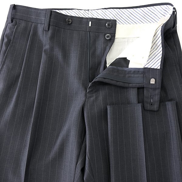 A6サイズ(普通体型のLサイズ相当) 胸囲94 胴囲82 身長175 ※商品に記載されたサイズ・寸法です※ 【ジャケット】 肩幅45cm 身幅51.5cm 袖丈61cm 着丈72.5cm 【スラックス】 ウエスト84cm(内回り1周) 股上26.5cm 股下93.5cm 裾幅19cm 腿幅29.5cm(股下10cm部分) 表地:毛99% ポリエステル1% (ポリエステル1%は装飾糸として使用) 胴裏:キュプラ100% 袖裏:キュプラ100% 下衣裏地:ポリエステル100% グレー系 |