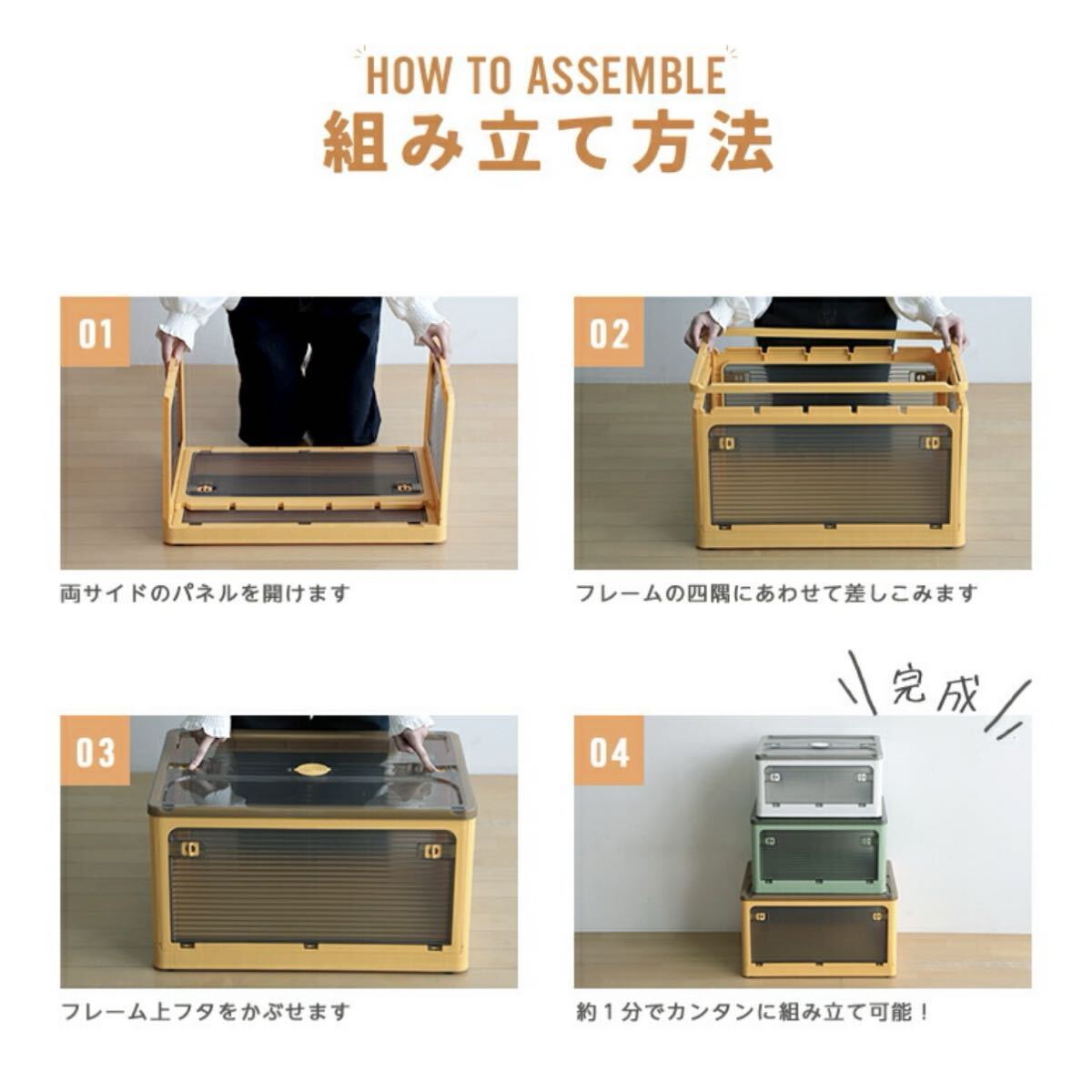 【簡単組み立て、軽い移動】:収納ボックスの側板を採用し、折りたたんだ後の高さはわずか7cm。また、30秒で簡単に組み立てられます。 収納ボックスの底部には足車が付いているため、荷物がいっぱいでも簡単に移動できます。使わない時は簡単に折りたためるので、置き場所にも困りません。