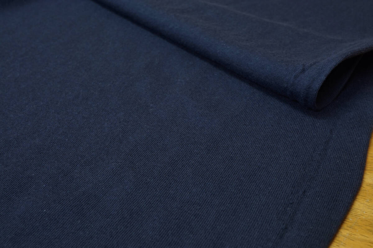 綿100%、中厚~やや微薄、くったり柔らか、弱めの透け感、1way伸縮、色調:ネイビーでございます。