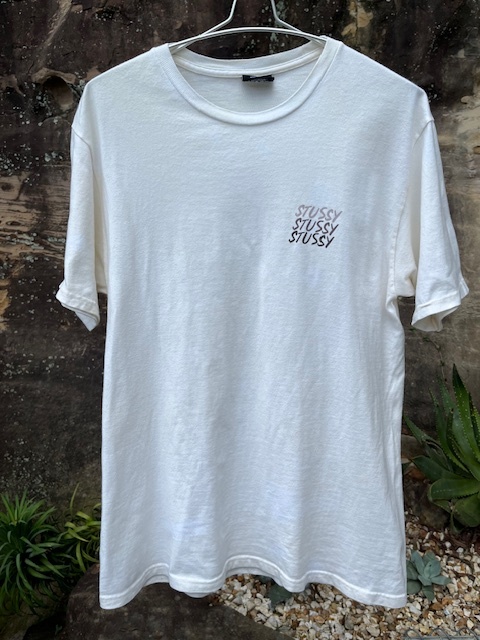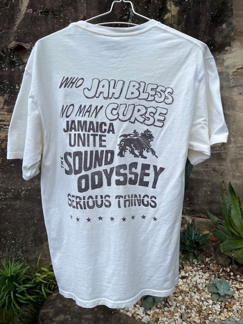<やや難あり>Stussy ステューシー ラスタライオン バックプリント Tシャツ Mサイズ 白 ジャマイカ オデッセイ