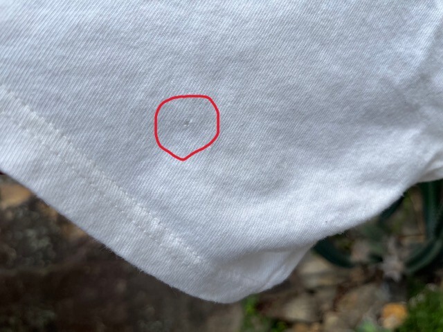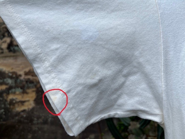 注意事項:全体にやや色むら、首周りのヨレ、小さな穴、シミ汚れがあります(画像5・6)