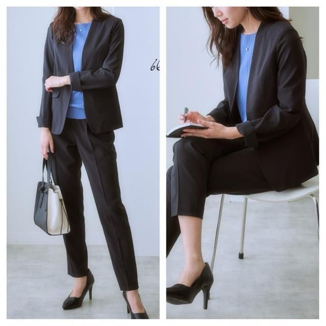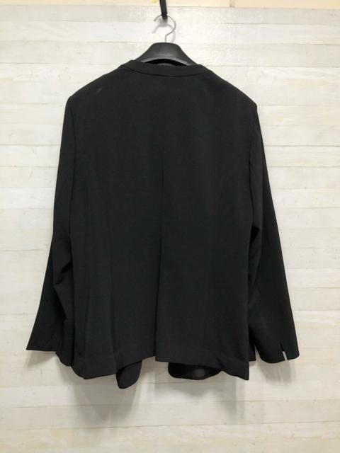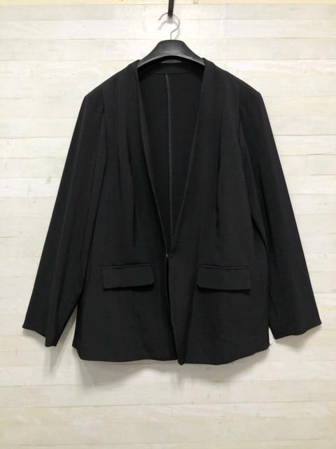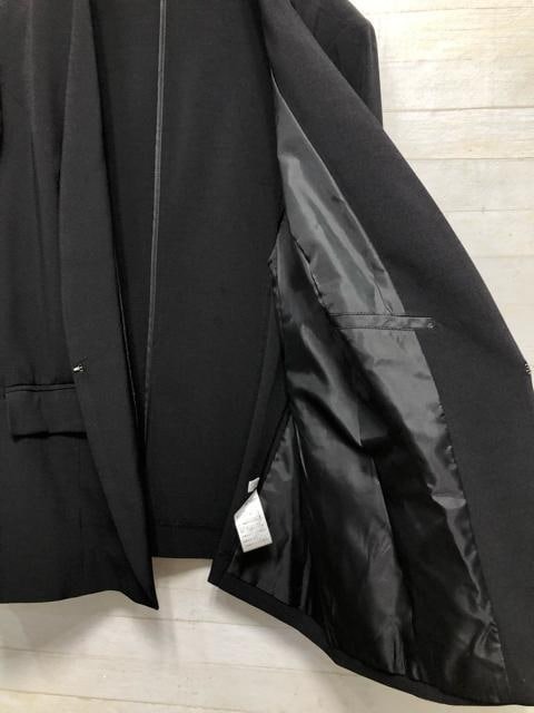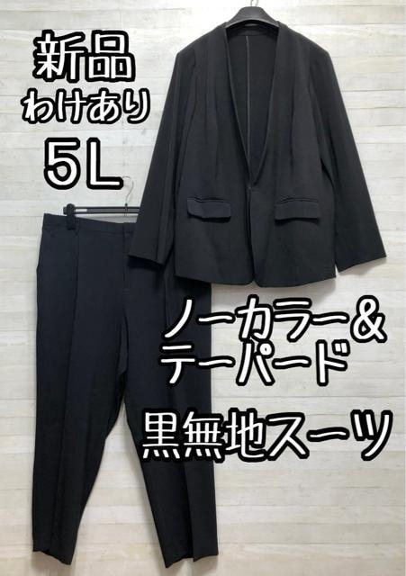 新品わけあり☆5L♪黒無地パンツスーツうす軽ノーカラー&テーパードQ424