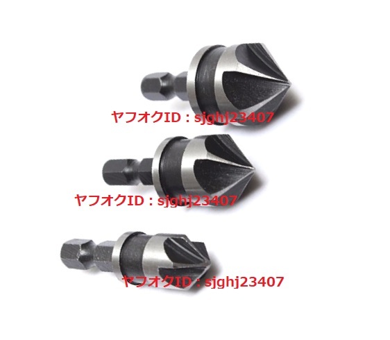 ★面取り バリ取り ドリル 3本セット HSS高炭素鋼 6角軸 穴あけ カッター V溝 ビット下穴 鉄工 アルミ 木工 六角軸 消耗品 ステンレス