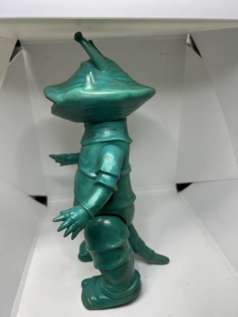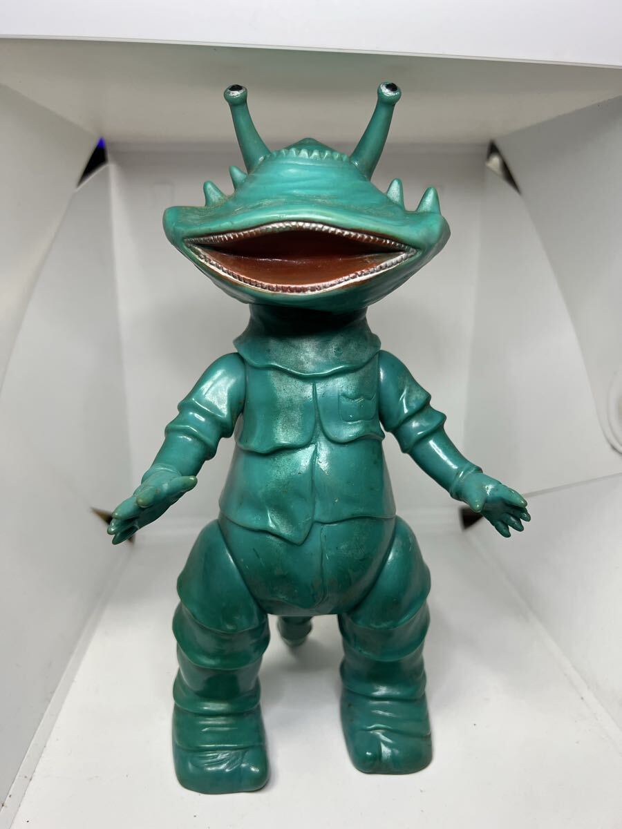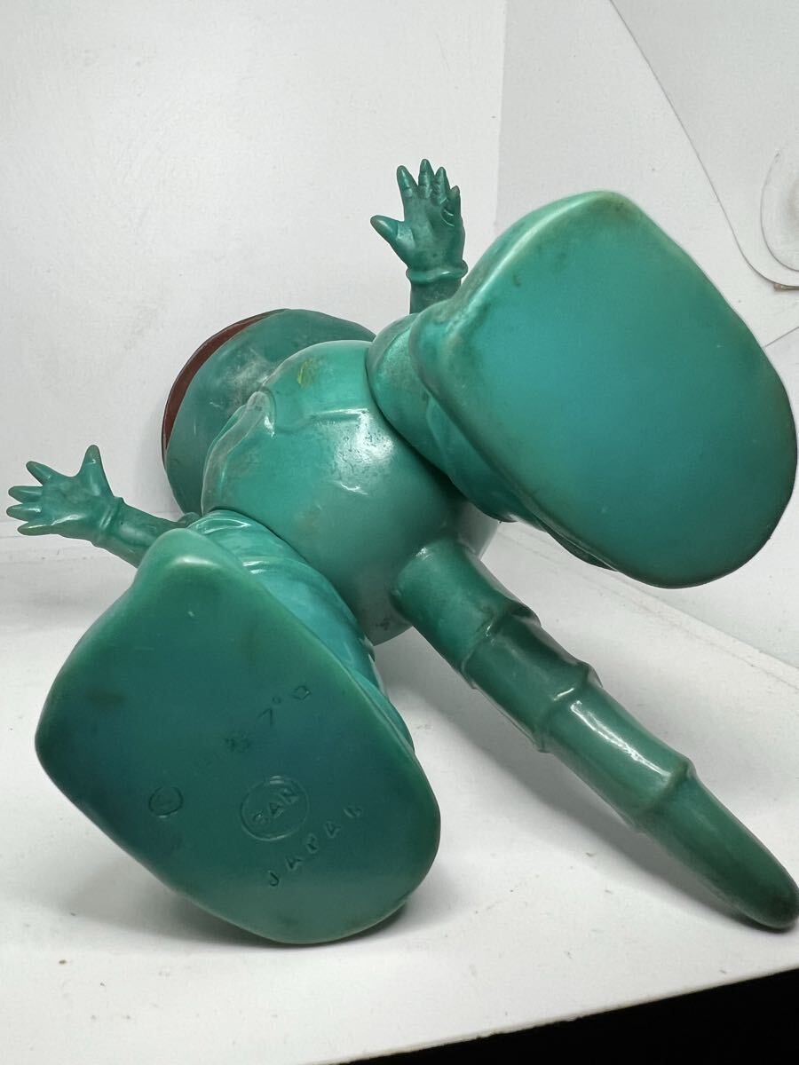 購入後、押入れで保存していました。復刻版ではありません。復刻のソフビとは違います。目の付け根も問題ありません。水色成形色にグリーンメタリックが吹いてあります。