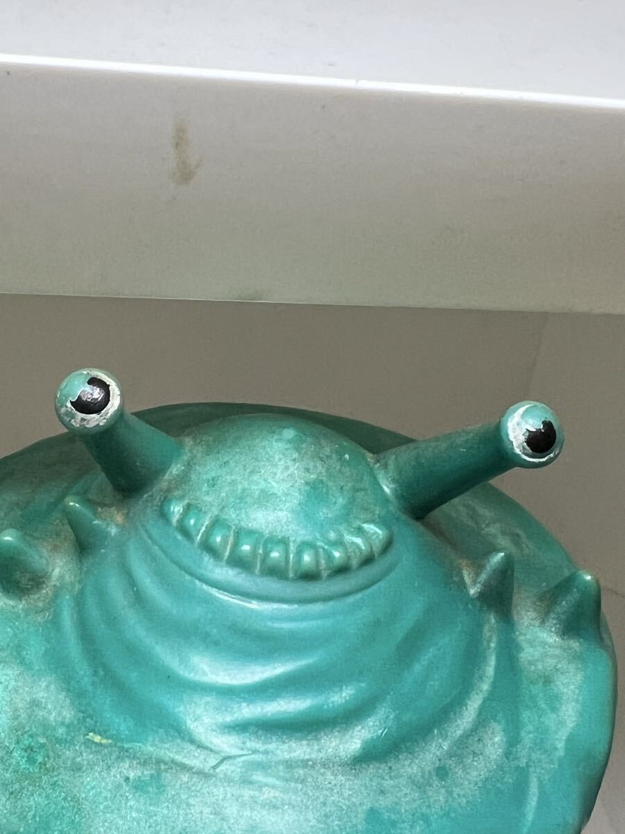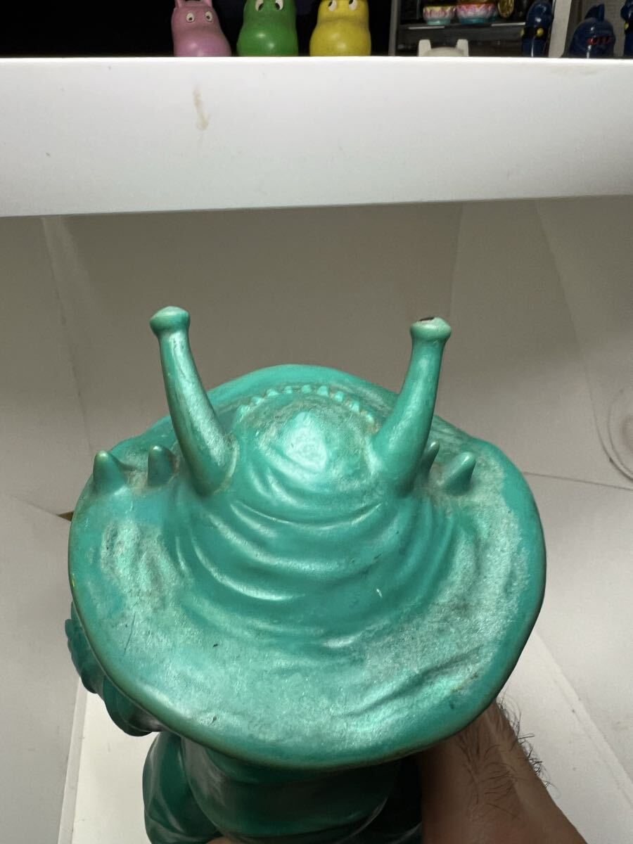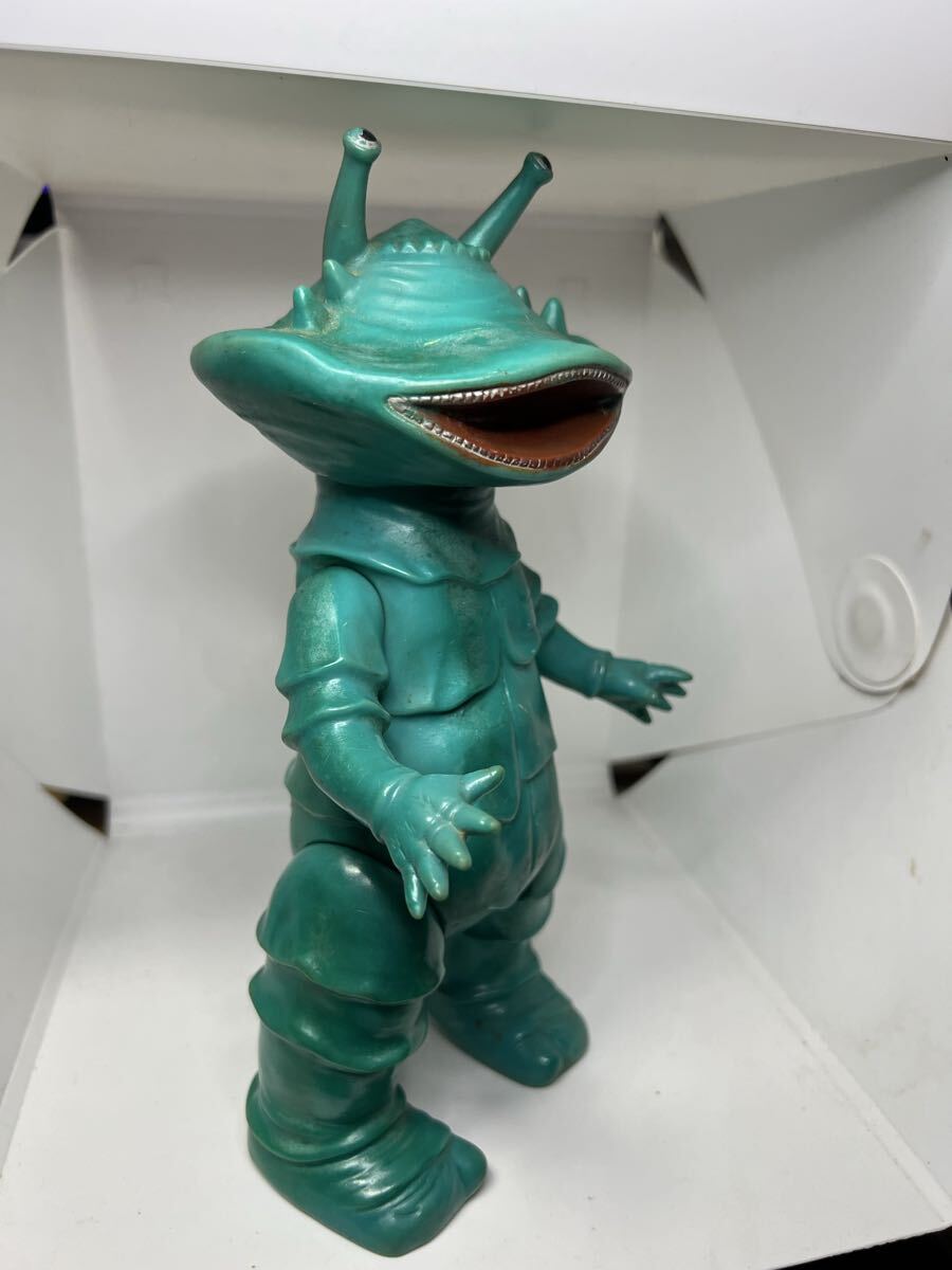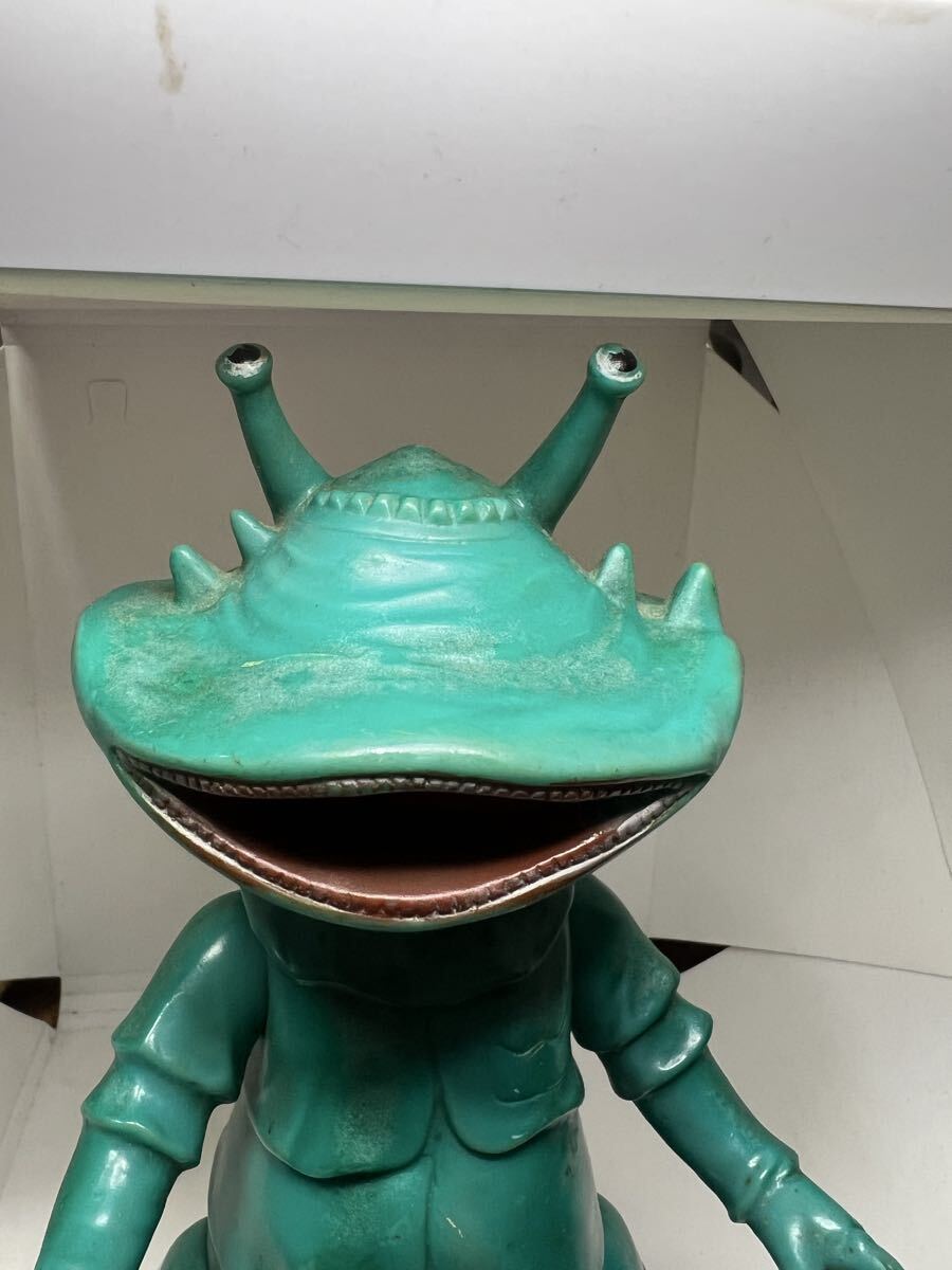 購入後、押入れで保存していました。復刻版ではありません。復刻のソフビとは違います。目の付け根も問題ありません。水色成形色にグリーンメタリックが吹いてあります。