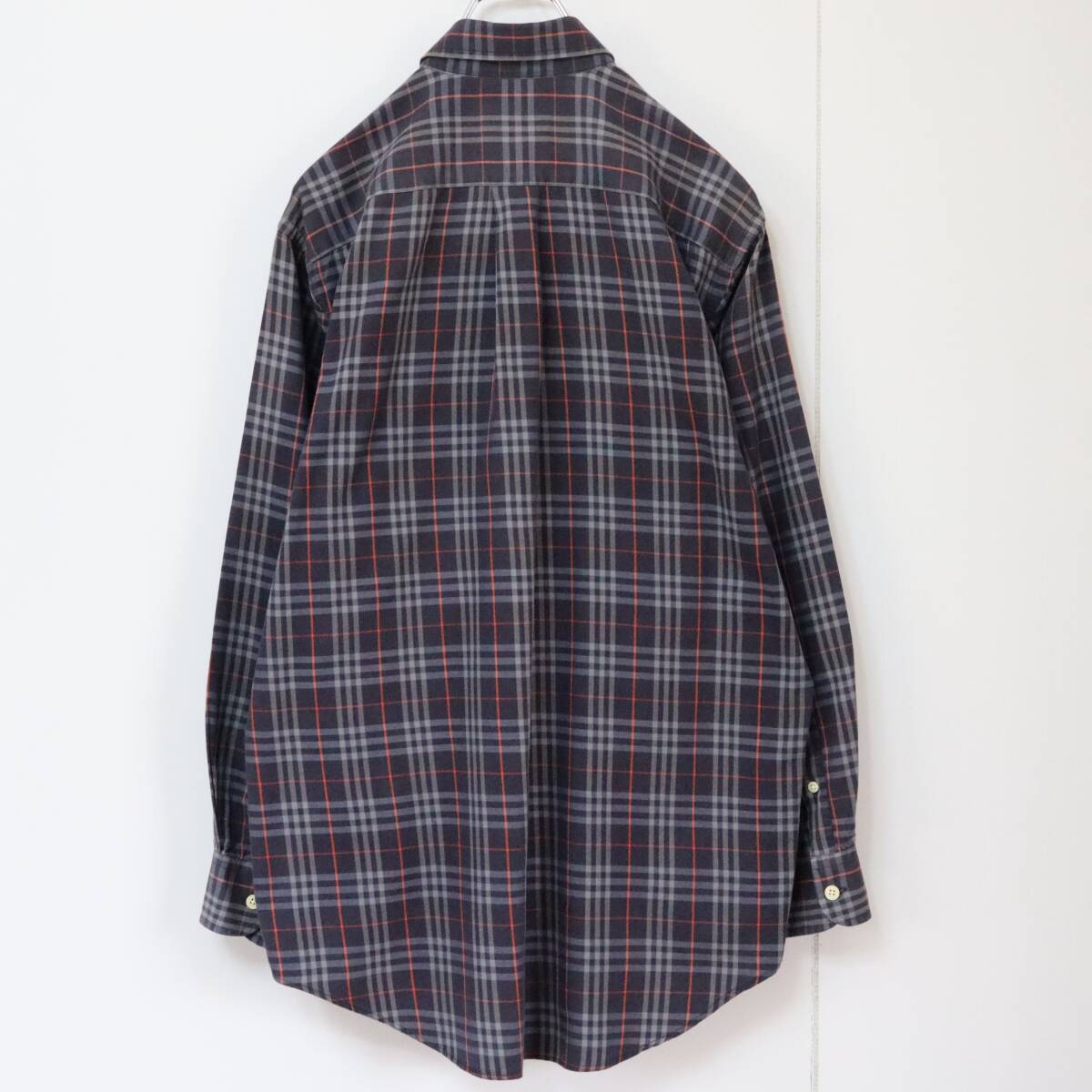 【90s】バーバリーズ BDシャツ ノバチェク柄 刺繍ロゴ M 紺色 ビンテージ