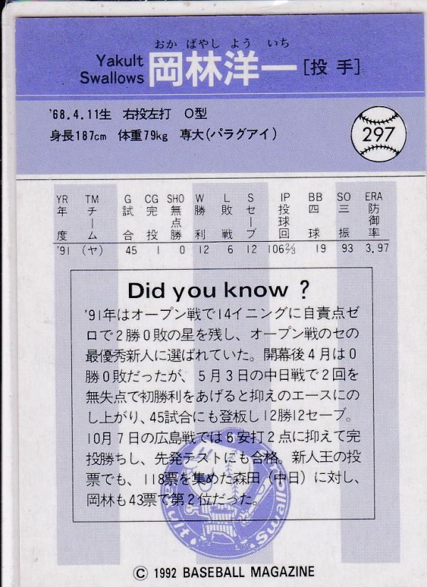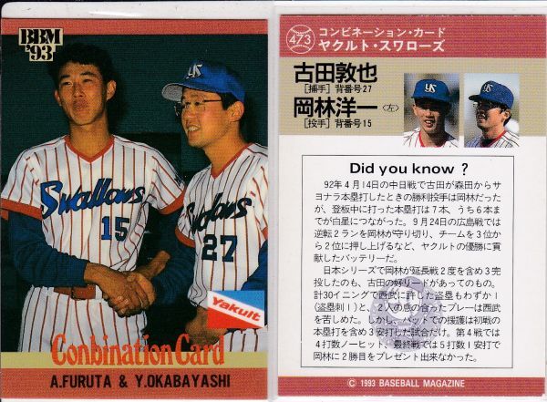 ●1993BBM【古田 敦也&岡林 洋一】コンビネーションカード473& 92岡林 297 2種セット:ヤクルト