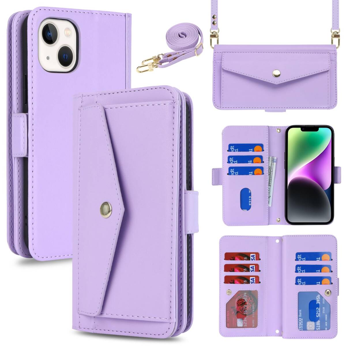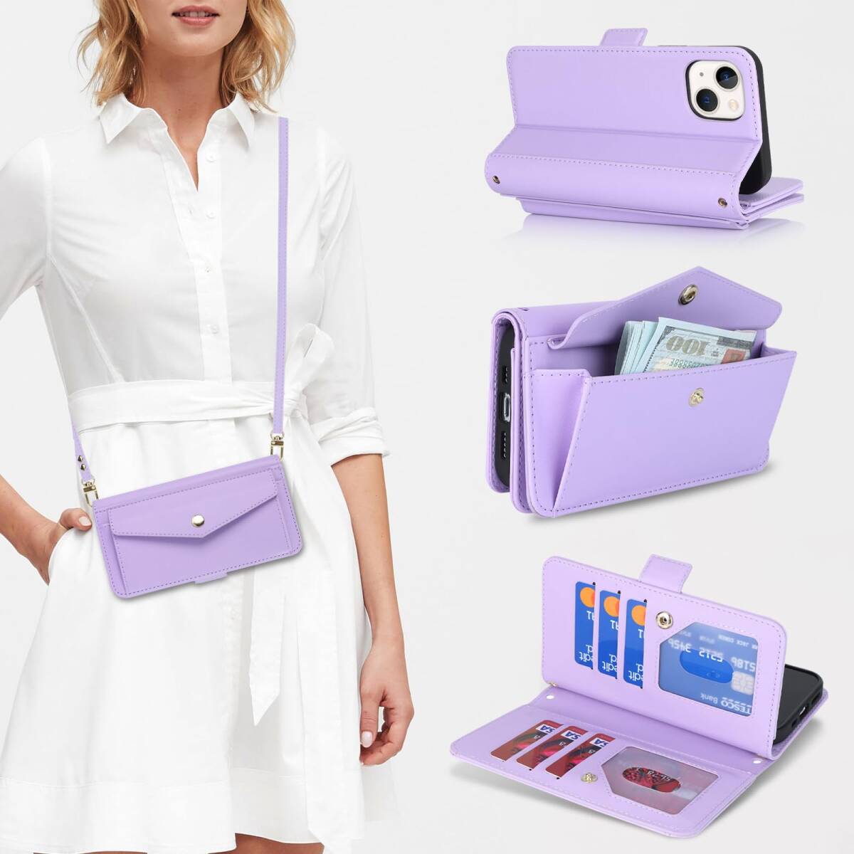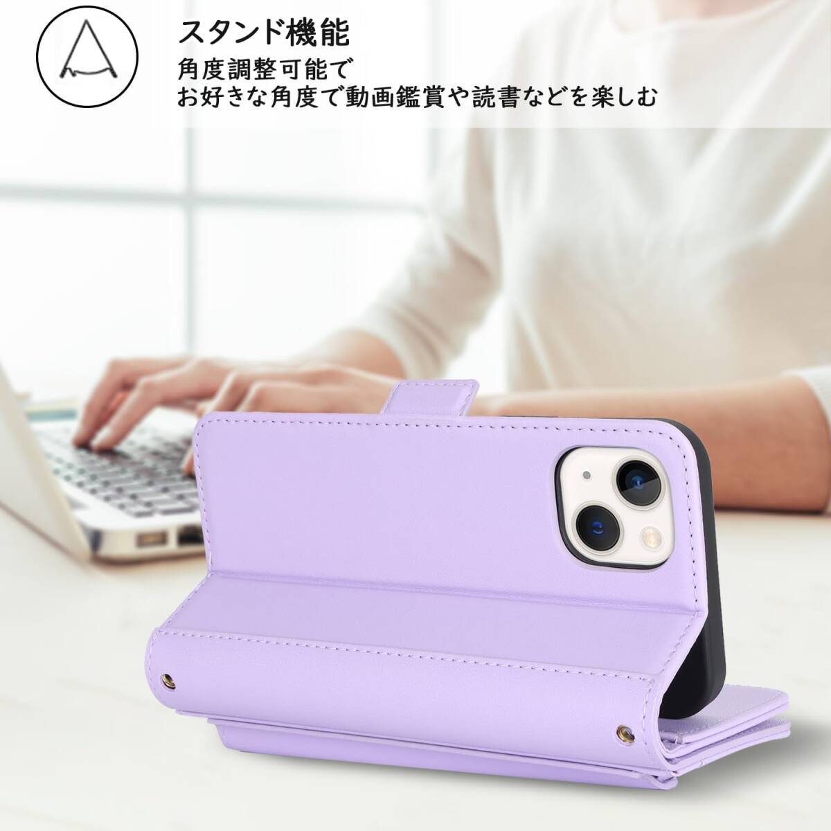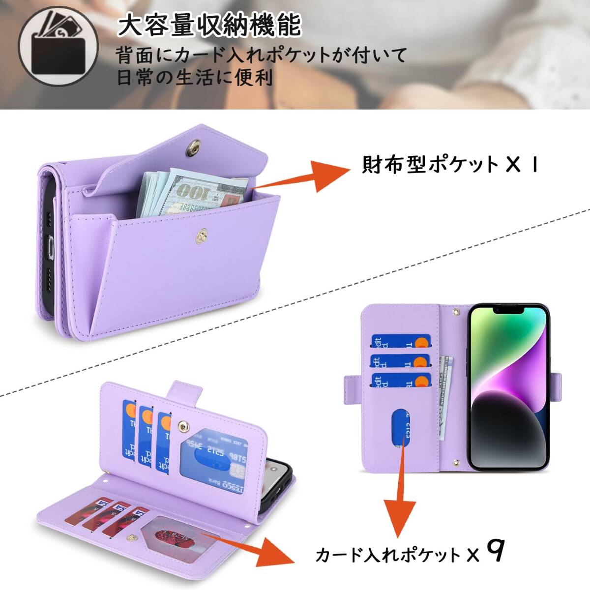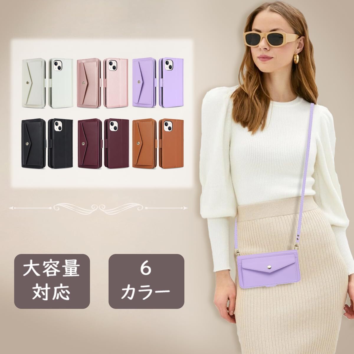 【Hamany】 いphone14 ケース 手帳型 スマホ ショルダー iphone 14 ケース カード収納 大容量 スマホケース iphone 13 スタンド機能 財布型 耐衝撃 耐久性 全面保護 女性 肩がけ 首掛け 斜め掛け ショルダー 携帯カバー -パープル
