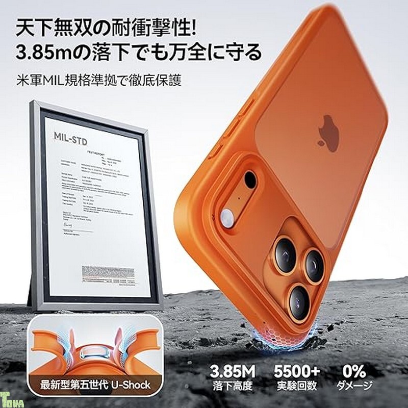 オレンジ 半透明 マット 米軍規格 ワイヤレス充電 ストラップホール 全面保護 アイフォン iPhone 17 Pro Max 保護 バンパー ケース カバー