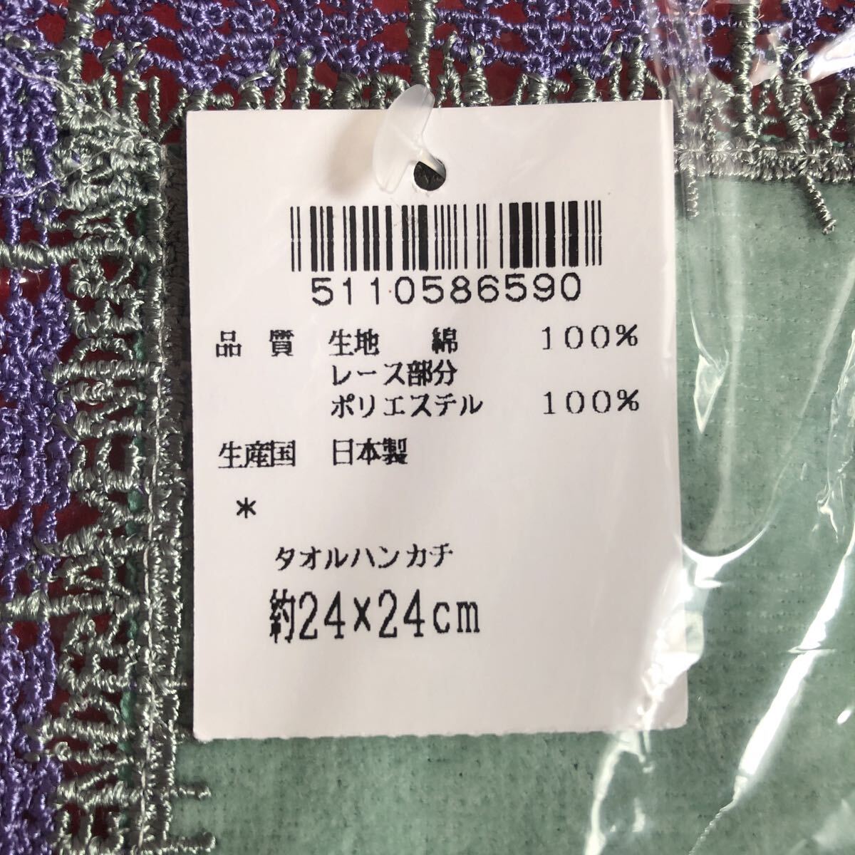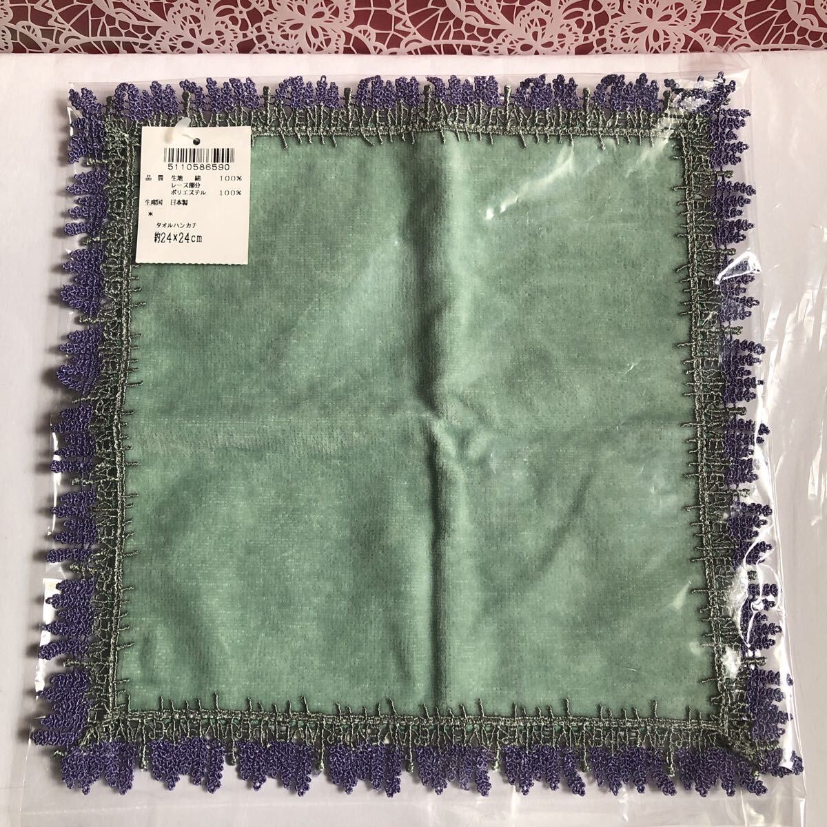 近沢レース シーズンタオルハンカチ ラベンダー・グリーン ハンカチ タグ付き未使用品