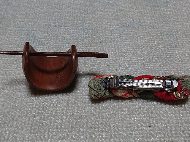 バレッタ 髪止め 2個 木製 縮緬 アンティーク レディースアクセサリー ヘアアクセサリー