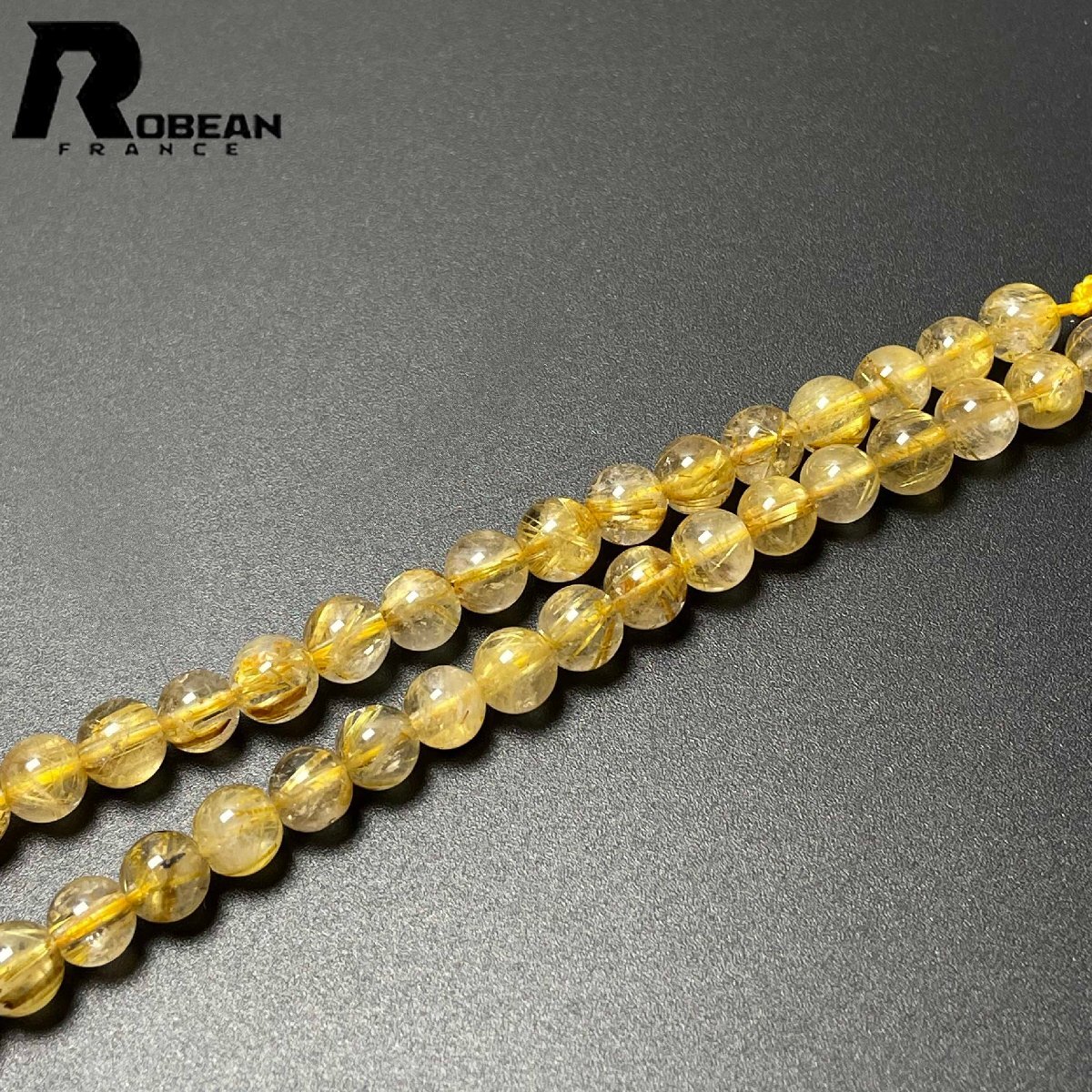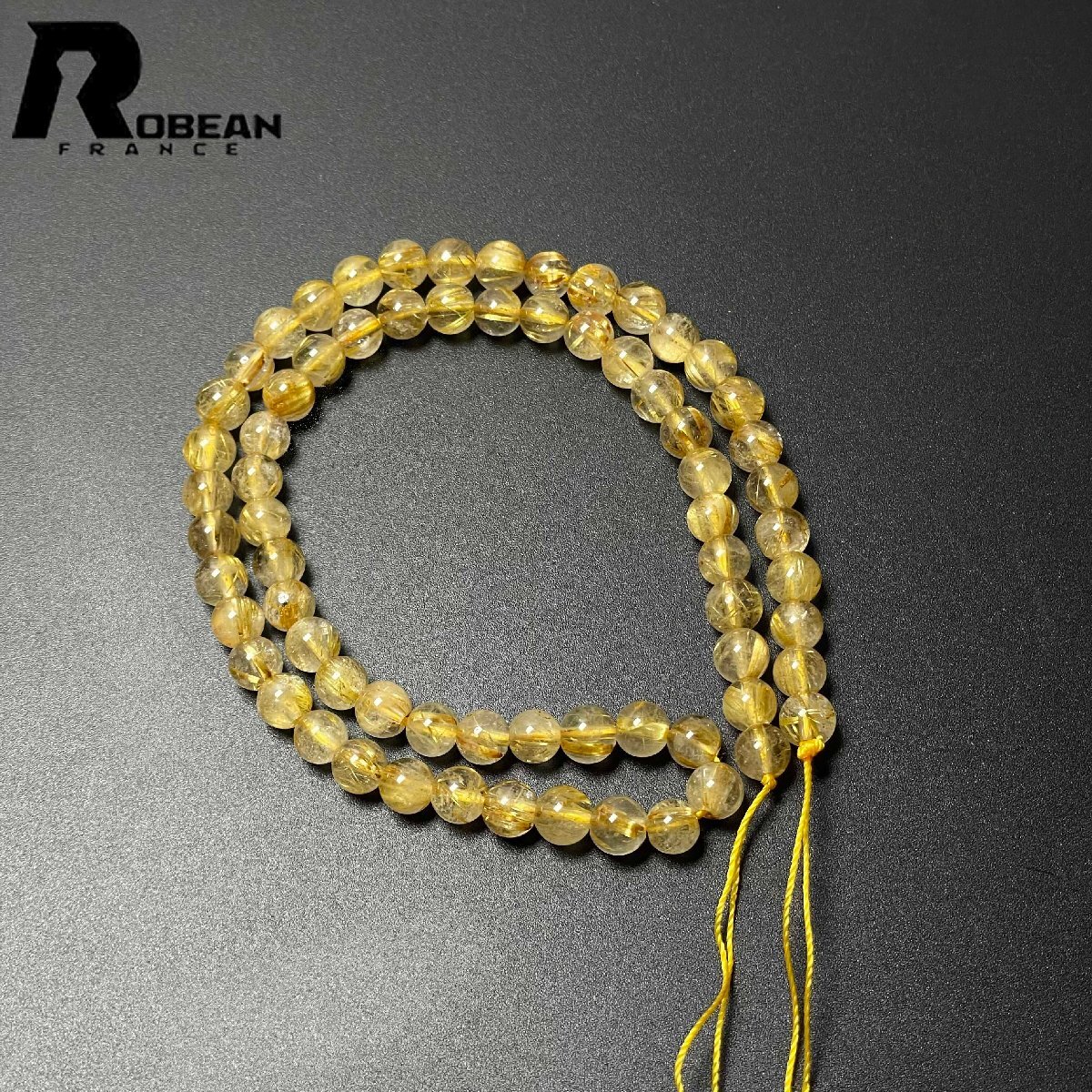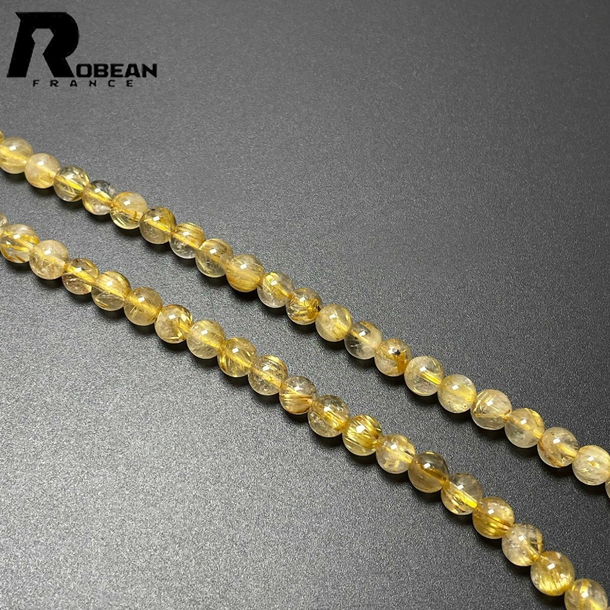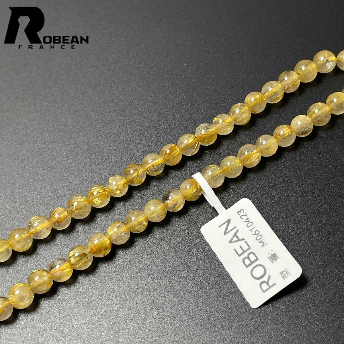 夢色 EU製 定価7万円★ROBEAN・黄金タイチンルチル★黄金針水晶 ゴールド 金運 開運 パワーストーン 1連 約5.8-6.3mm M0610423