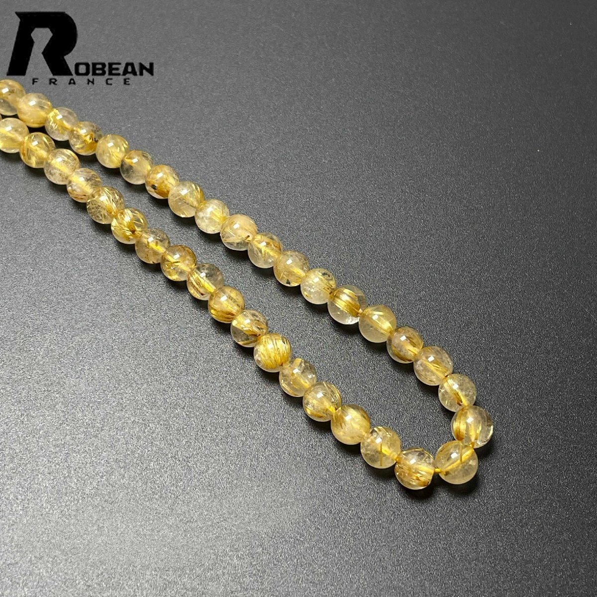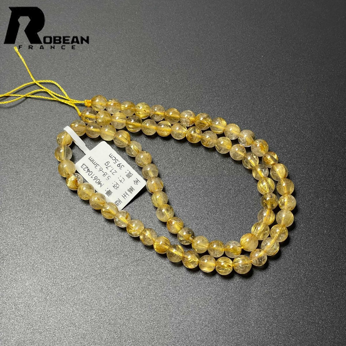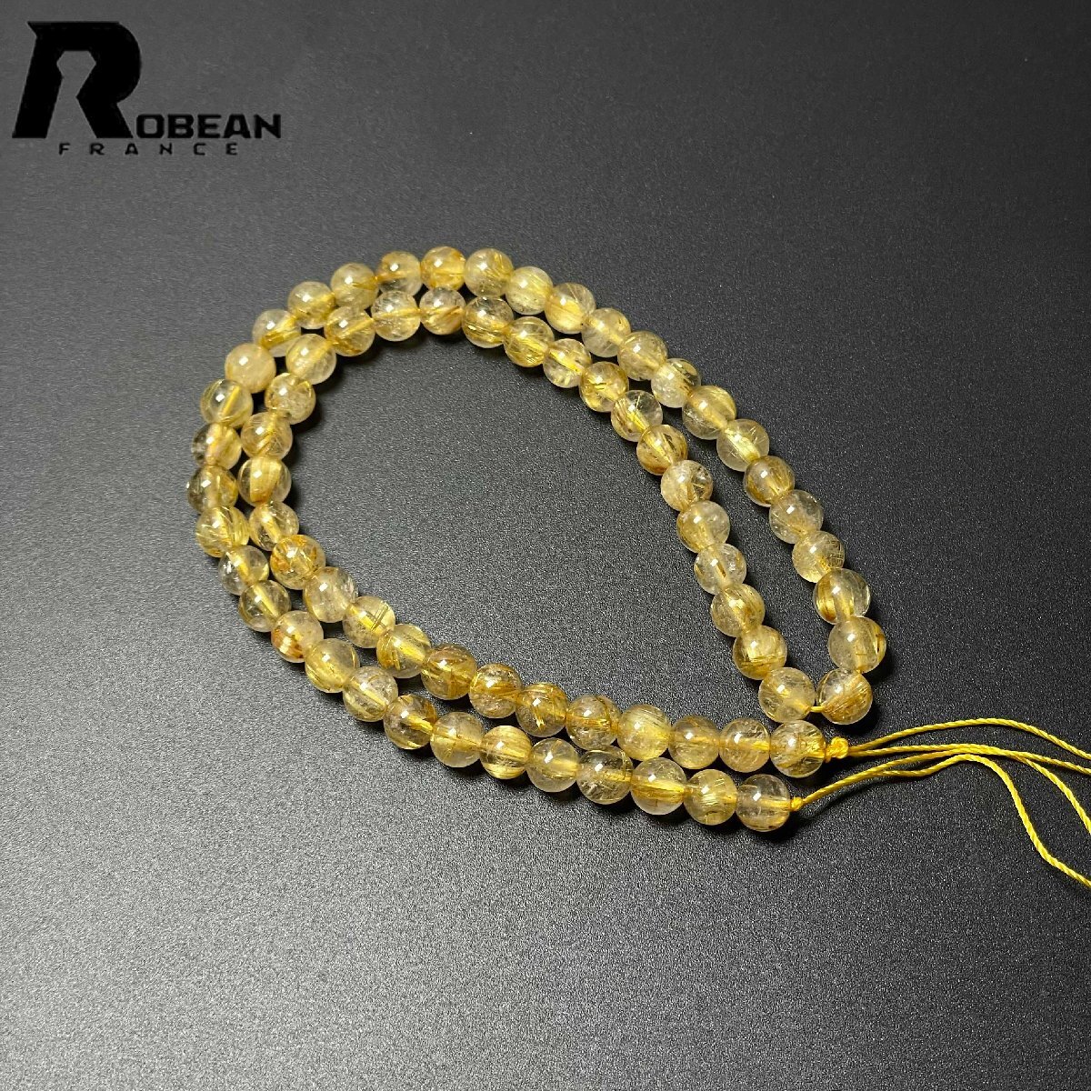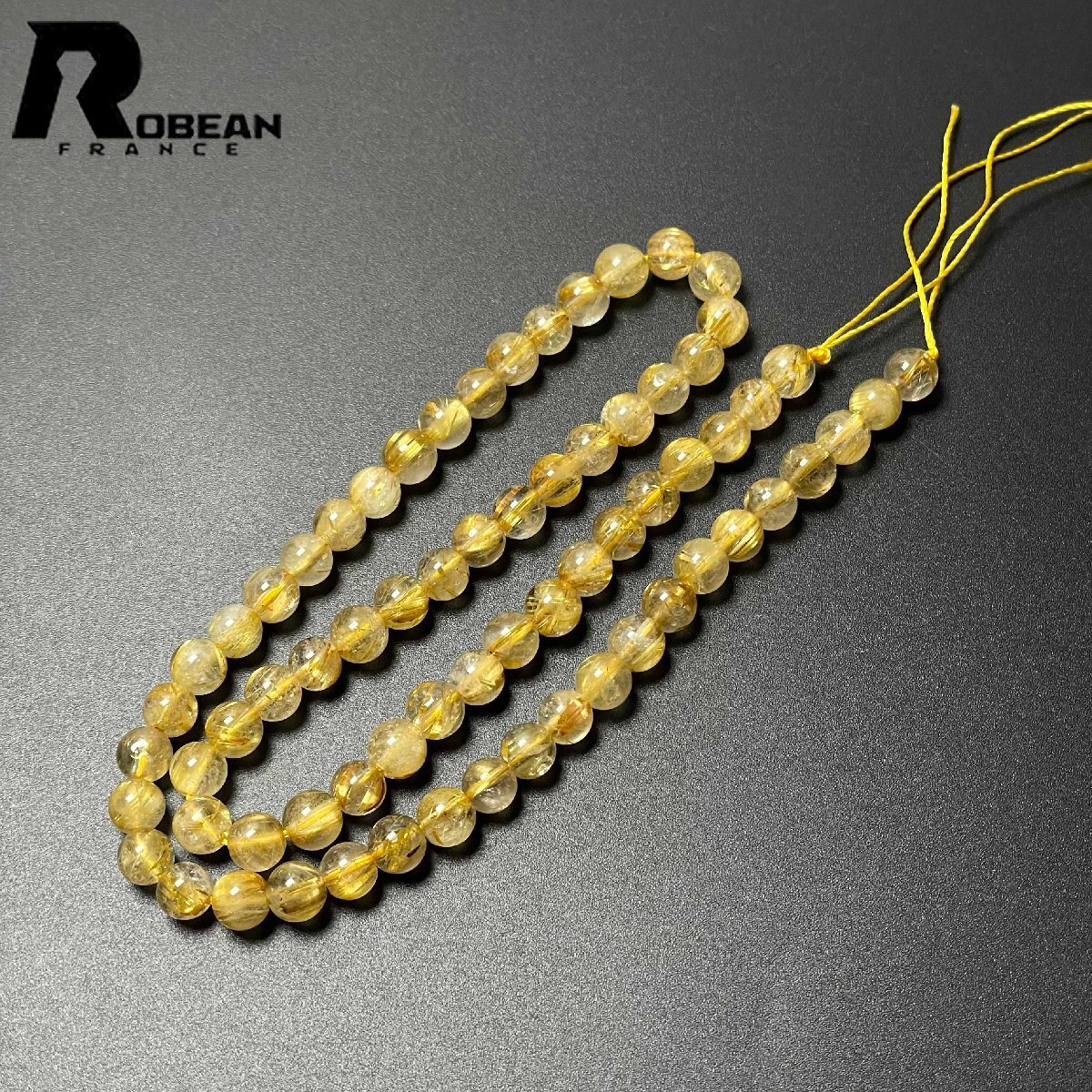 夢色 EU製 定価7万円★ROBEAN・黄金タイチンルチル★黄金針水晶 ゴールド 金運 開運 パワーストーン 1連 約5.8-6.3mm M0610423
