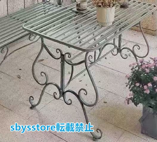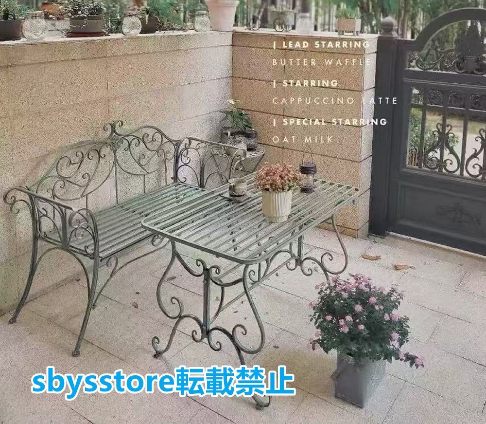 レトロなテラステーブル&椅子ンティークガーデンベンチメタルパークベンチ屋外ベンチグリーン屋外パティオ家具(低机)