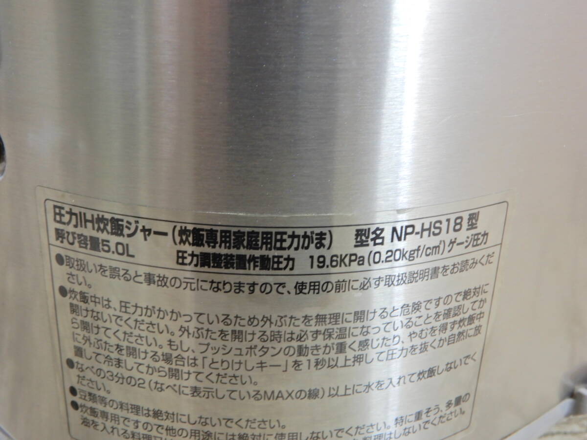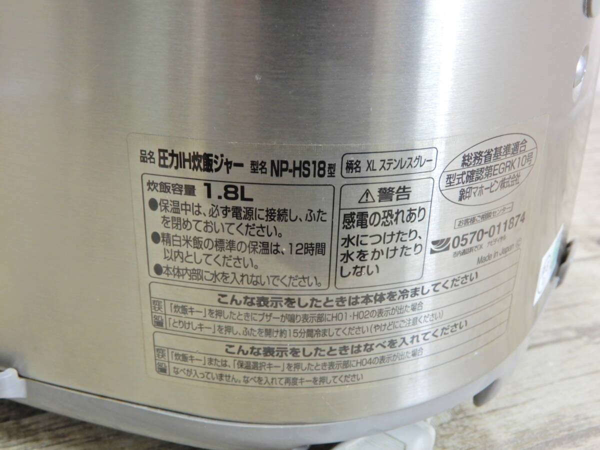 A2595★\1~ZOJIRUSHI/象印 家庭用 圧力IH炊飯ジャー 容量:一升炊き model:NP-HS18