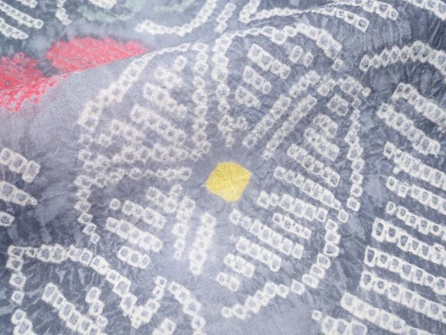 | 【綿・バチ衿】 状態は接写画像のように、後身頃に薄い汚れがございますが その他特に目立ったシミ汚れなどもなく大変良い状態です。 人気の高い“有松鳴海絞り”の浴衣でございます。 “鳴海絞り”ならではの表情を生み出す立体感と 淡いぼかしで息を吹き込まれ、 今にも動き出しそうな迫力を放っております。 夏祭りや花火大会、これから増えるイベントに連れ立って、 より夏をお楽しみ下さいませ。 大変上質な極上の逸品になります。 お安く出品致しますので、是非この機会にいかがでしょうか?