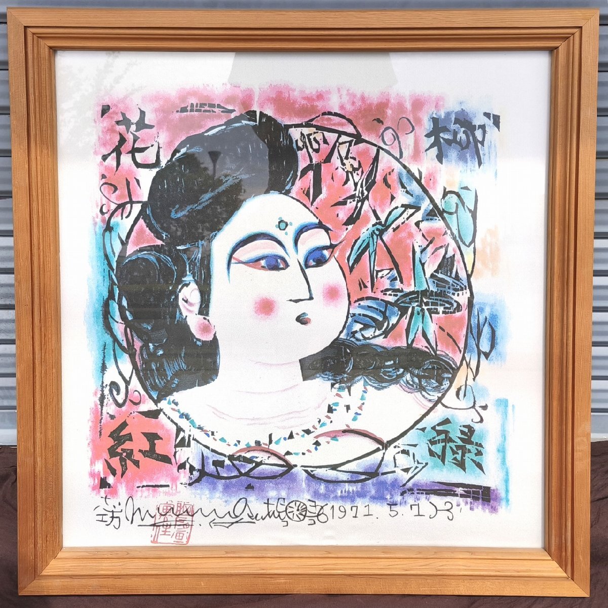 額縁(横×縦×厚さ):約770×800×30㎜、状態ランク:C 商品は画像に写っているものが全てです。額縁裏側がガムテープで封じられているため詳細は不明ですが、調べたところ1970年に文化勲章を受賞した記念に同様のものが製作されているようです。またプライバシー保護のため、額縁裏にマジック書きされていた個人名は紙ヤスリで削りました。その他状態は画像をご確認ください。
