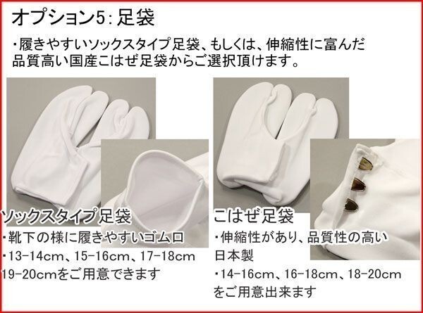 足袋 三尺帯 腰紐 | ■三歳用足袋を2種類からご用意できます 1.ソックスタイプの足袋:別途¥580 13~14cm 15~16cm 2.こはぜ付本格足袋(日本製):別途¥1500 13~14cm 15~16cm ■三尺(兵児帯)はピンク、赤、黄色から選べて別途¥1500 ■腰紐は別途1本¥240 ※ご要望のお客様は、「フォーム備考欄」「メール(aji_net@khaki.plala.or.jp)」「お電話」「FAX」いずれかの方法でご連絡ください。 |