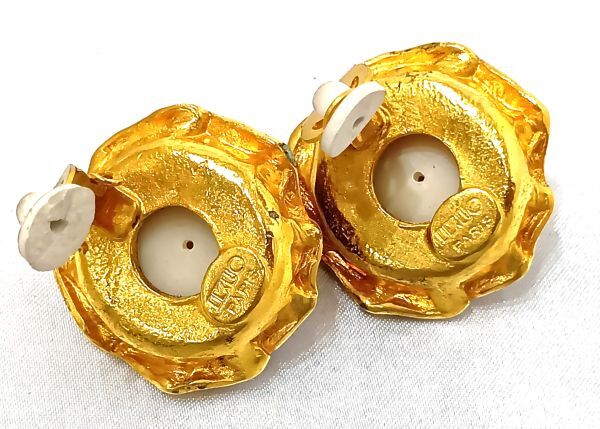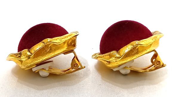 ・経年や保管による、メッキ剥がれ、緑青、スレ、変色、変形、スエード部分に埃や腐食、イヤリングの耳当てのクッション部分の変色や劣化などの傷みが見受けられます。