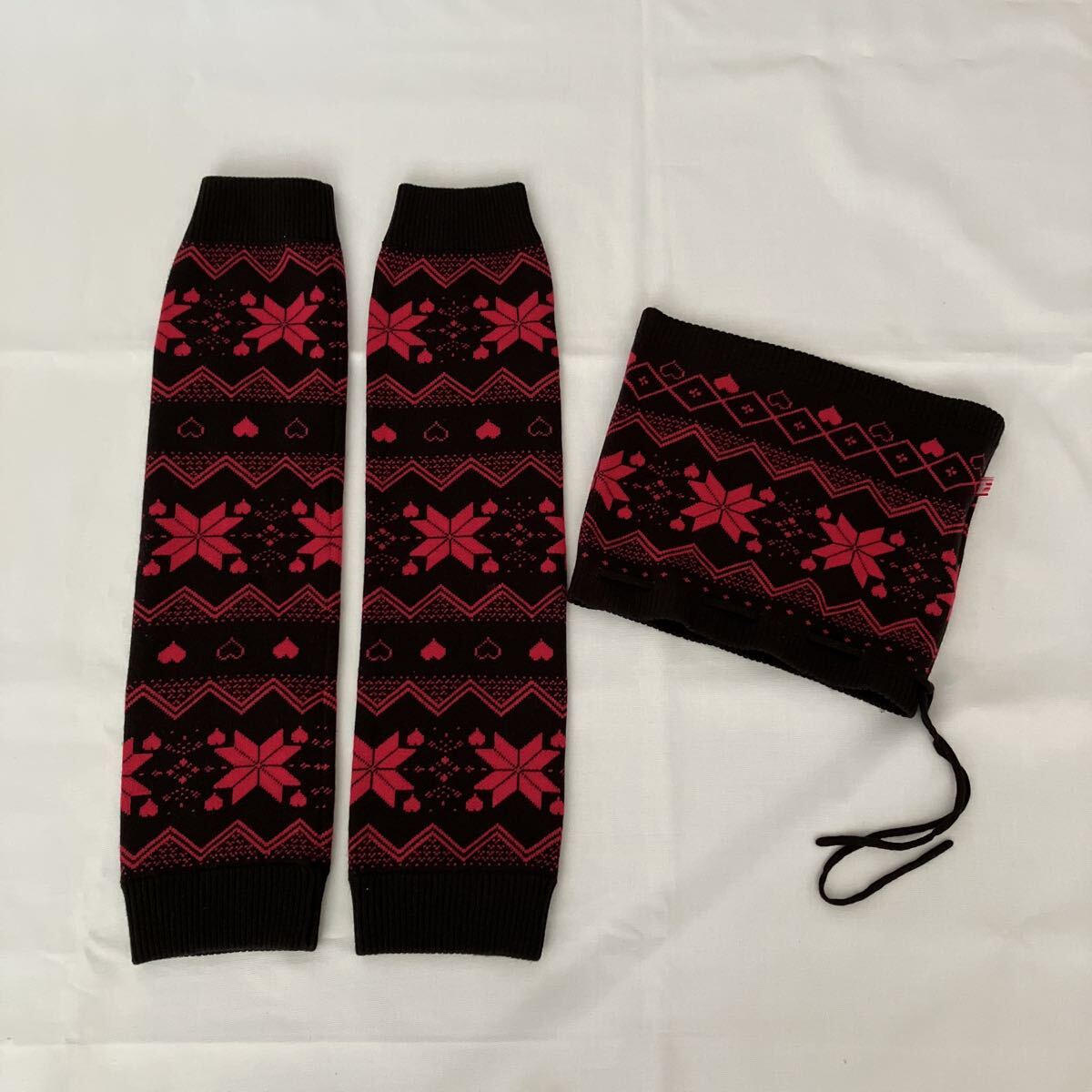 レックウォーマー ネックウォーマー 2点セット 黒 ピンク 柄 未使用 美品
