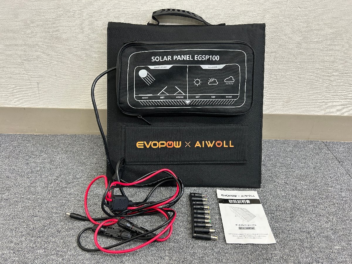 【中古品】Evopow ポータブルソーラーパネル EGSP100 ソーラーチャージャー 太陽光パネル 折りたたみ 単結晶返還率 太陽光発電 キャンプ